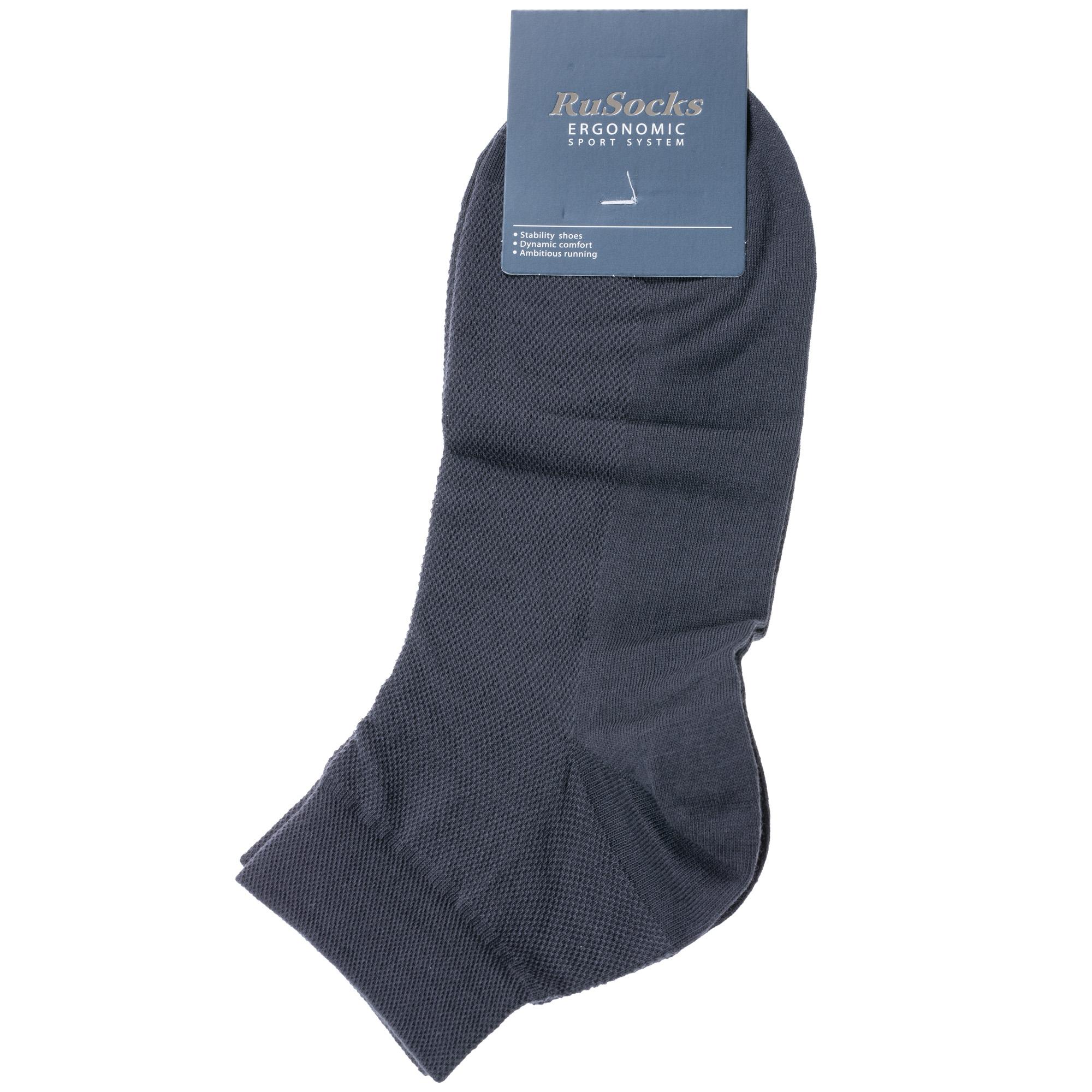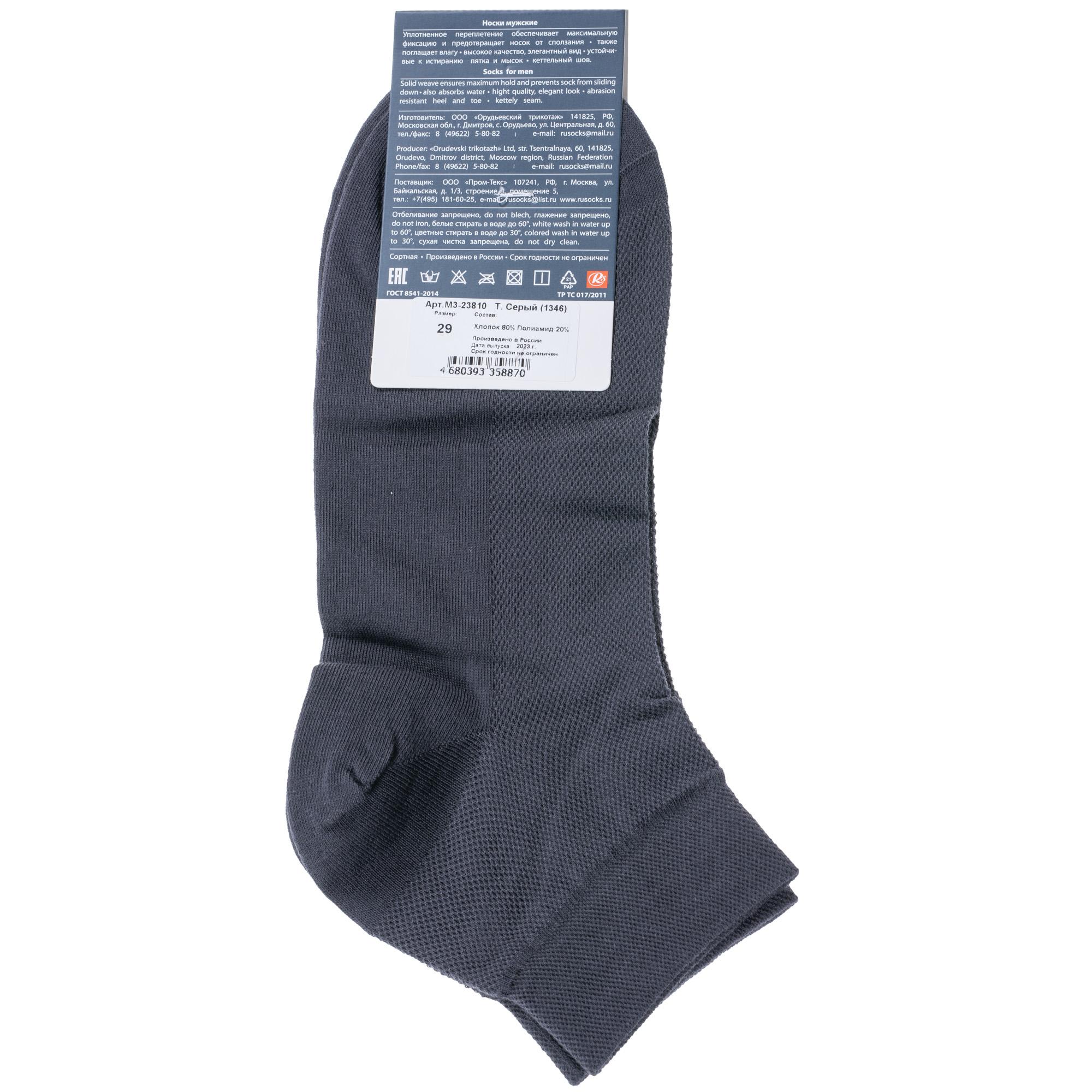 Летние укороченные мужские носки, цвет темно-серый, в сеточку, спортивные, шов кеттельный (бесшовная технология), принт (рисунок): однотонный, без рисунков/узоров, состав: 80% хлопок, 20% полиамид, арт. М3-23810. Производитель «ООО Орудьевский трикотаж, Россия» под брендом «Rusocks (орудьевский трикотаж)».