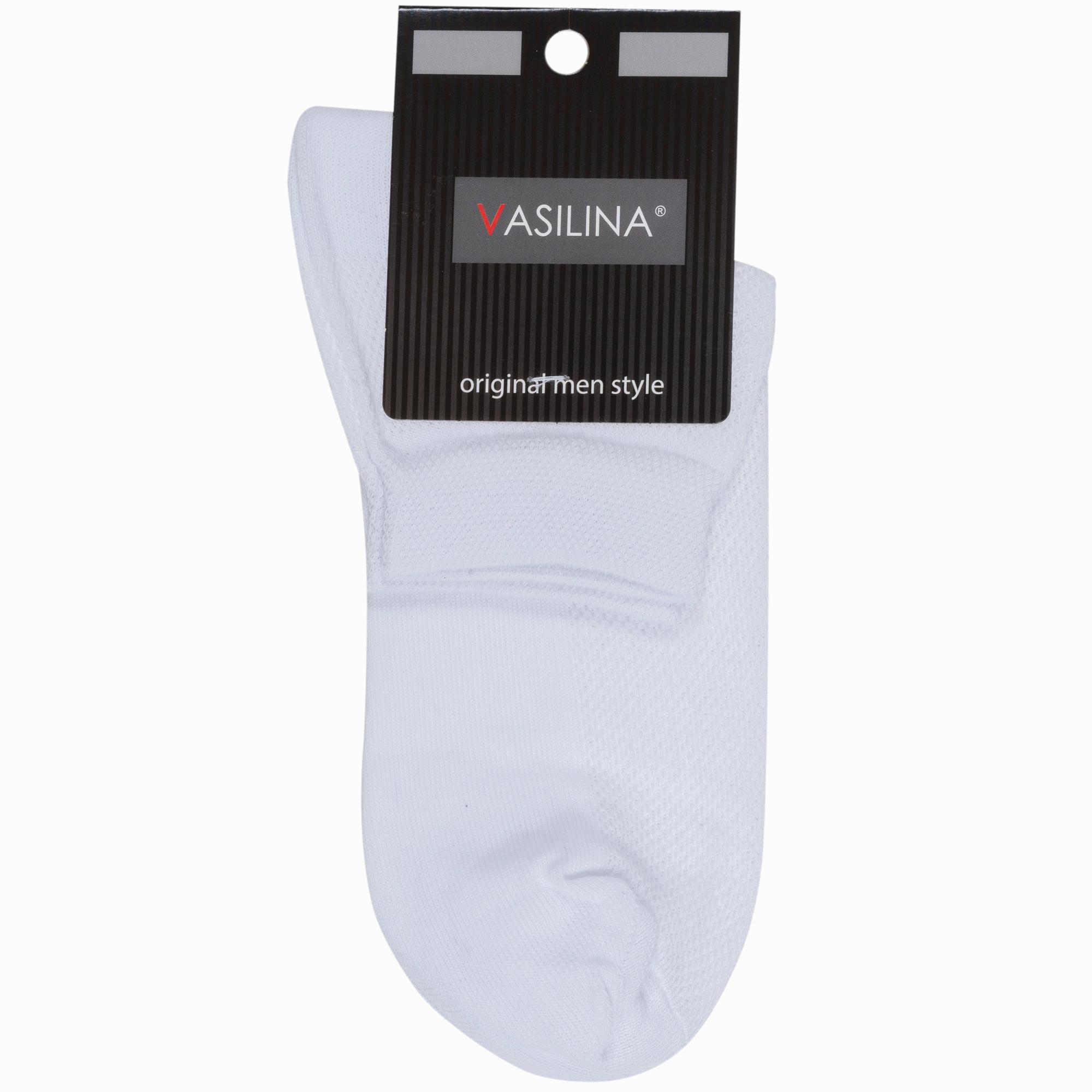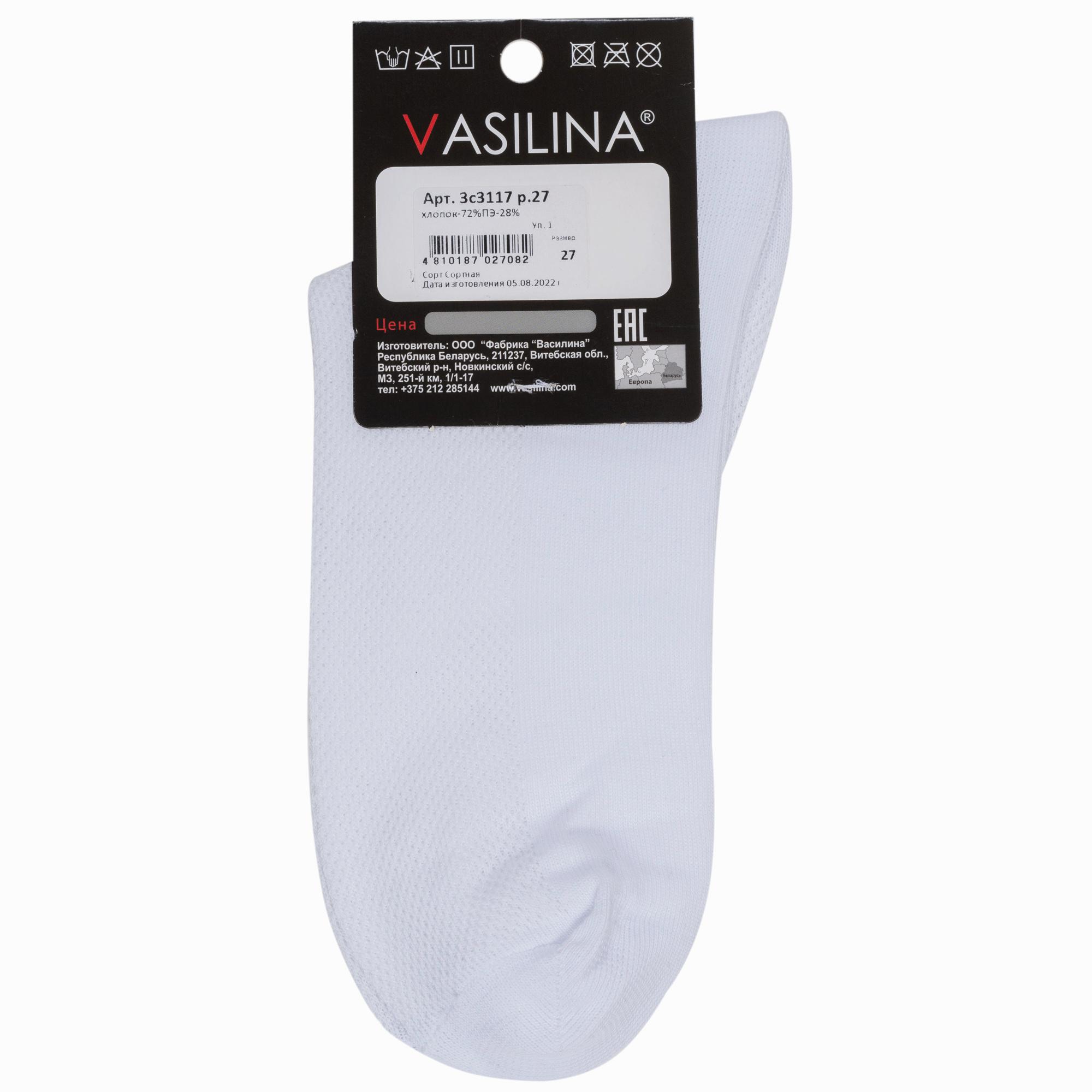 Летние укороченные мужские носки, цвет белый, классические, в сеточку, шов обычный (не бесшовные), принт (рисунок): однотонный, состав: 72% хлопок, 28% полиэстер, арт. 3С3117. Производитель «ООО Фабрика Василина, Беларусь» под брендом «Vasilina».