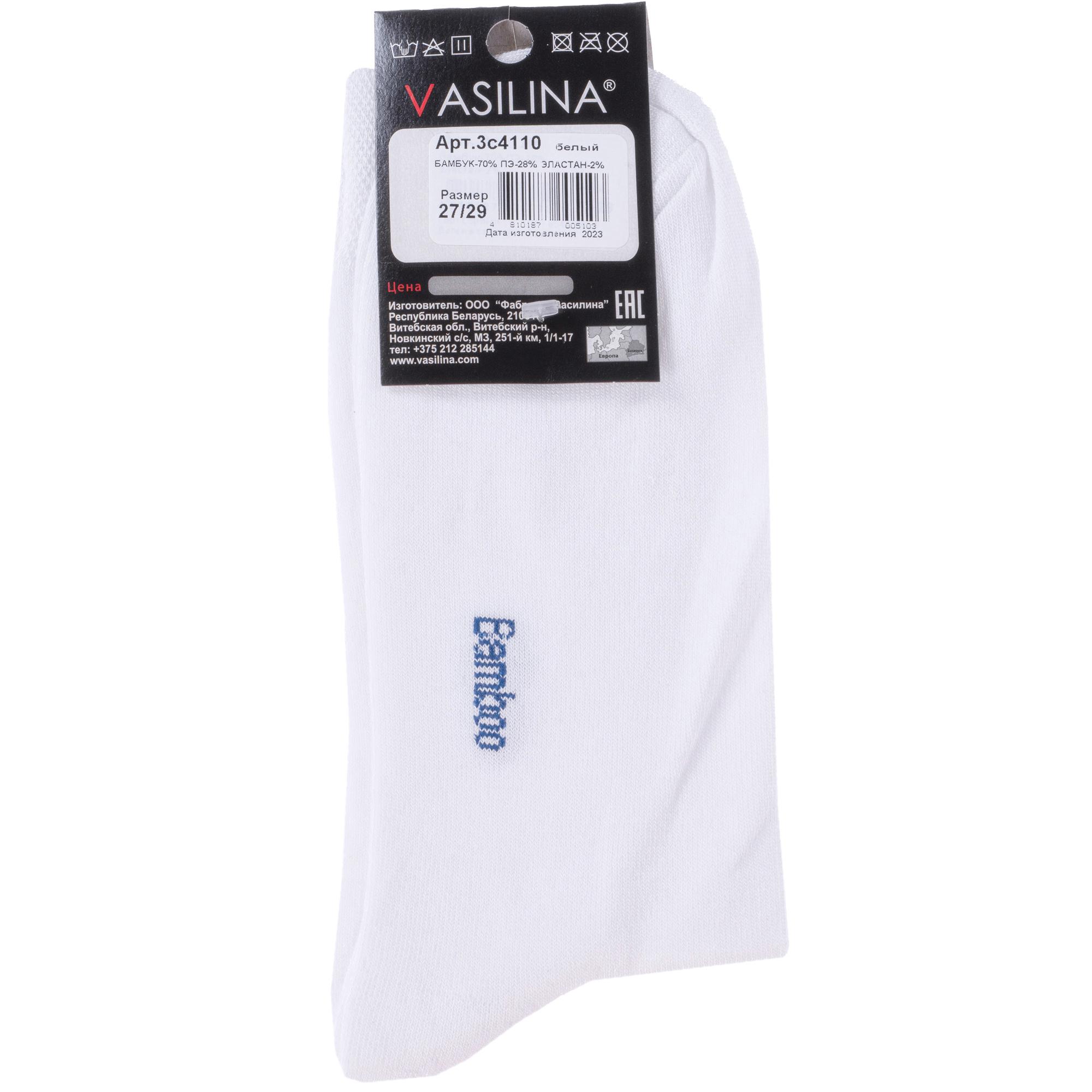 Круглогодичные или летние средней длины мужские носки, цвет белый, классические, шов обычный (не бесшовные), принт (рисунок): однотонный, небольшой рисунок, состав: 70% бамбук, 28% полиэстер, 2% эластан, арт. 3С4110. Производитель «ООО Фабрика Василина, Беларусь» под брендом «Vasilina».
