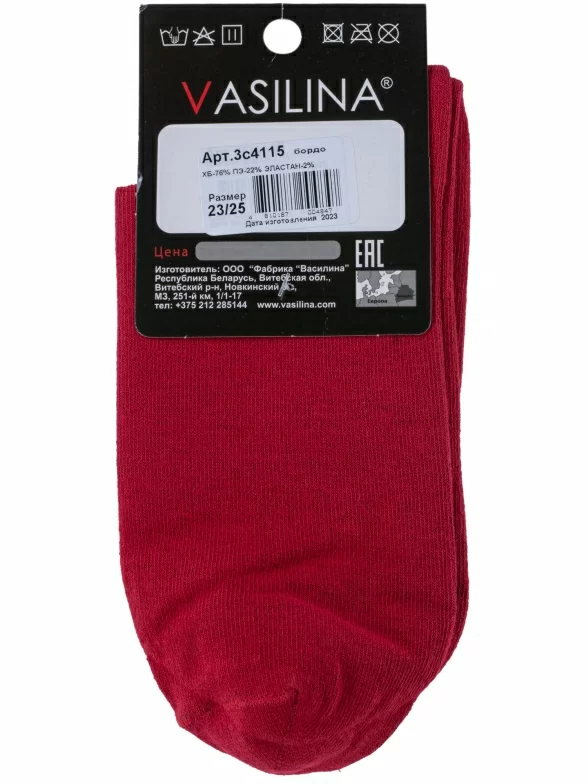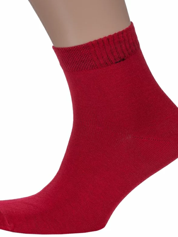 Круглогодичные укороченные мужские носки, цвет красный-бордовый, классические, шов обычный (не бесшовные), принт (рисунок): однотонный, без рисунков/узоров, состав: 76% хлопок, 22% полиэстер, 2% эластан, арт. 3С4115. Производитель «ООО Фабрика Василина, Беларусь» под брендом «Vasilina».