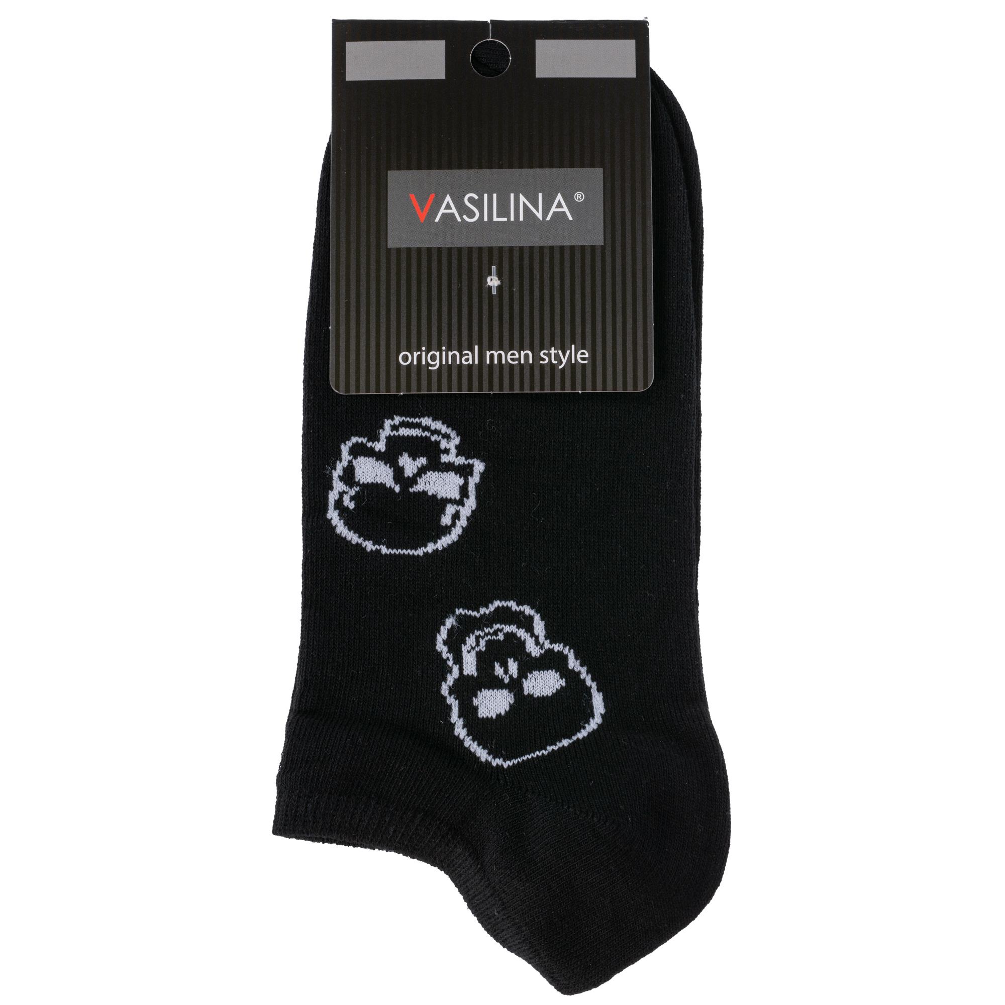 Круглогодичные или летние ультракороткие мужские носки, цвет черный, повседневные, шов обычный (не бесшовные), принт (рисунок): хоррор / ужасы, с узором, состав: 70% хлопок, 28% полиэстер, 2% эластан, арт. 7С4134. Производитель «ООО Фабрика Василина, Беларусь» под брендом «Vasilina».