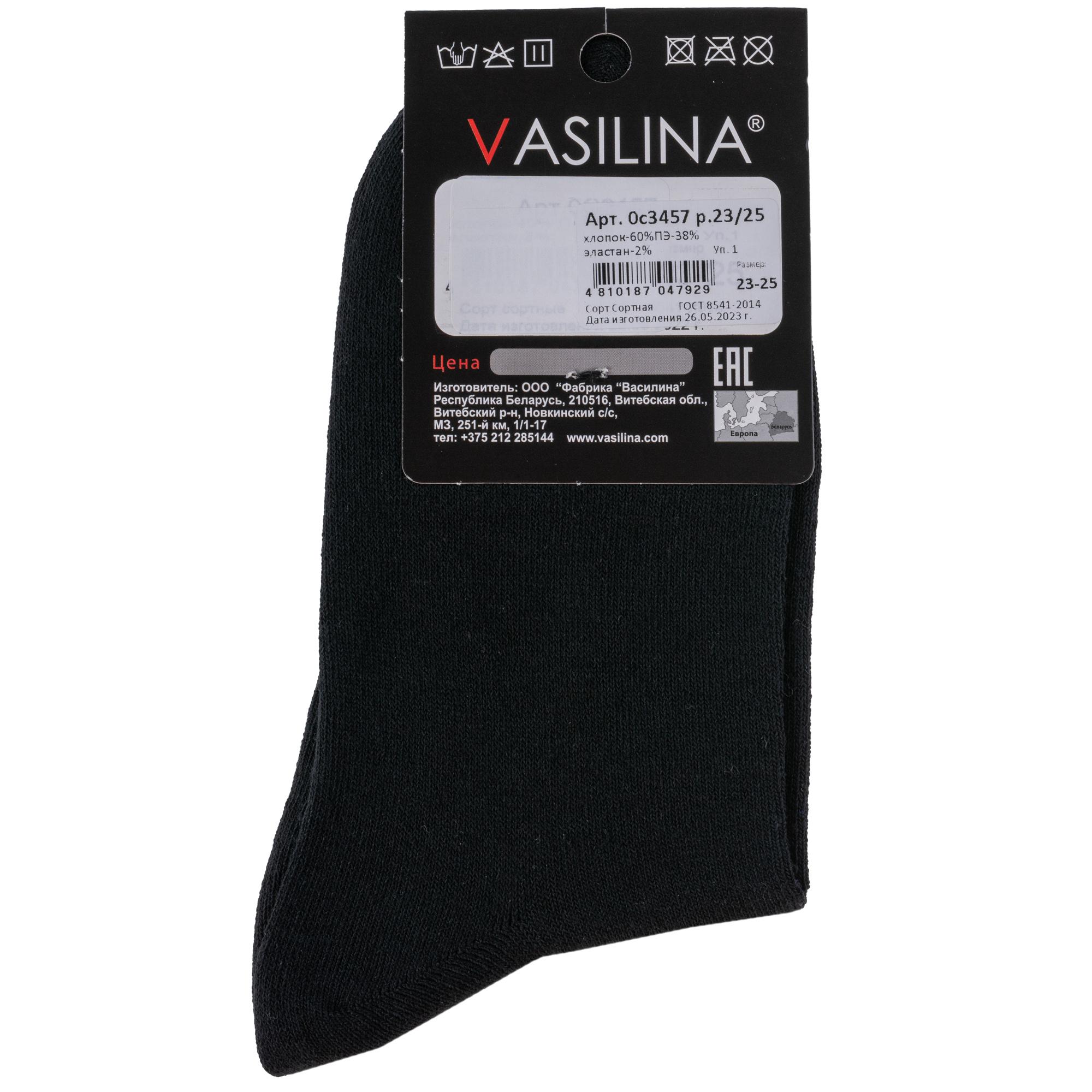 Круглогодичные укороченные мужские носки, цвет черный, классические, шов обычный (не бесшовные), принт (рисунок): однотонный, небольшой рисунок, состав: 60% хлопок, 38% полиэстер, 2% эластан, арт. 0С3457. Производитель «ООО Фабрика Василина, Беларусь» под брендом «Vasilina».