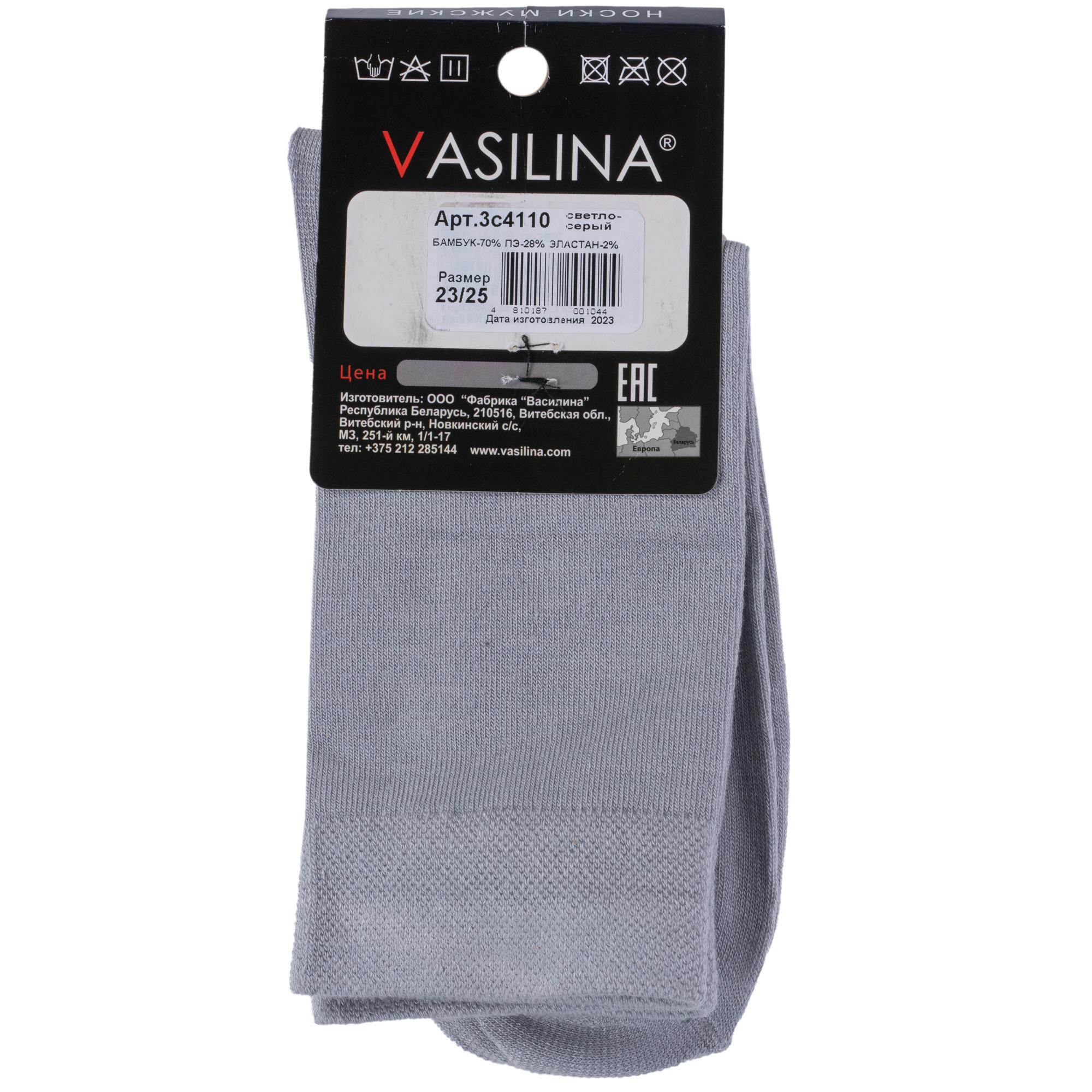 Круглогодичные или летние средней длины мужские носки, цвет светло-серый, классические, шов обычный (не бесшовные), принт (рисунок): однотонный, небольшой рисунок, состав: 70% бамбук, 28% полиэстер, 2% эластан, арт. 3С4110. Производитель «ООО Фабрика Василина, Беларусь» под брендом «Vasilina».