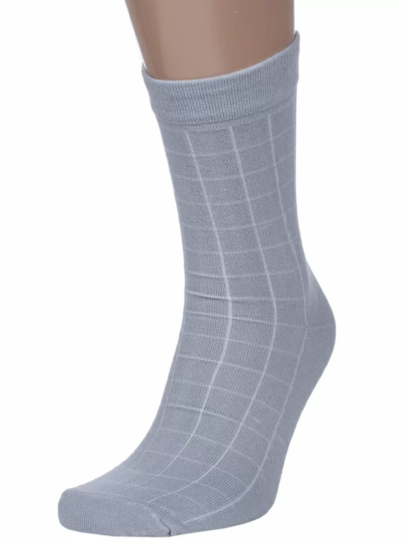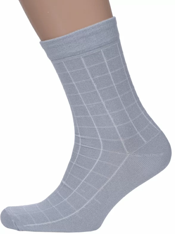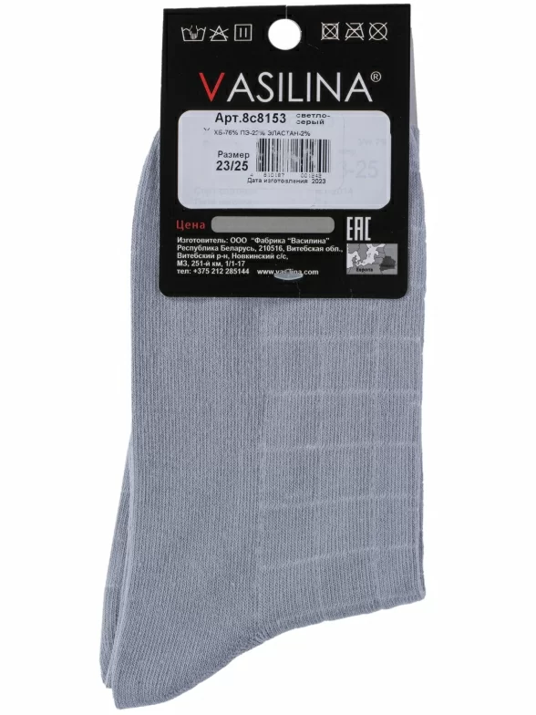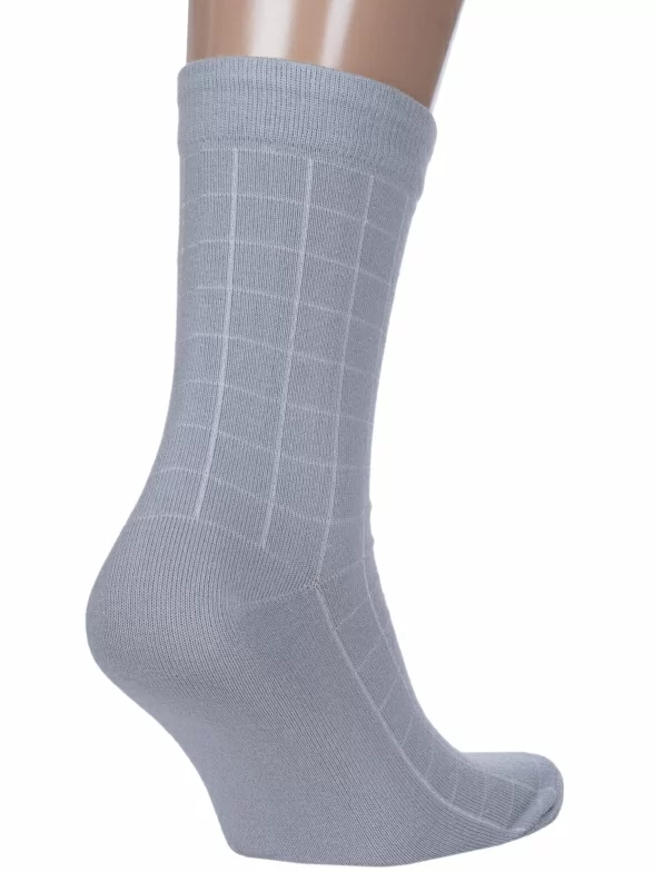 Круглогодичные средней длины мужские носки, цвет светло-серый, классические, шов обычный (не бесшовные), принт (рисунок): клетка, с узором, состав: 76% хлопок, 22% полиэстер, 2% эластан, арт. 8С8153. Производитель «ООО Фабрика Василина, Беларусь» под брендом «Vasilina».