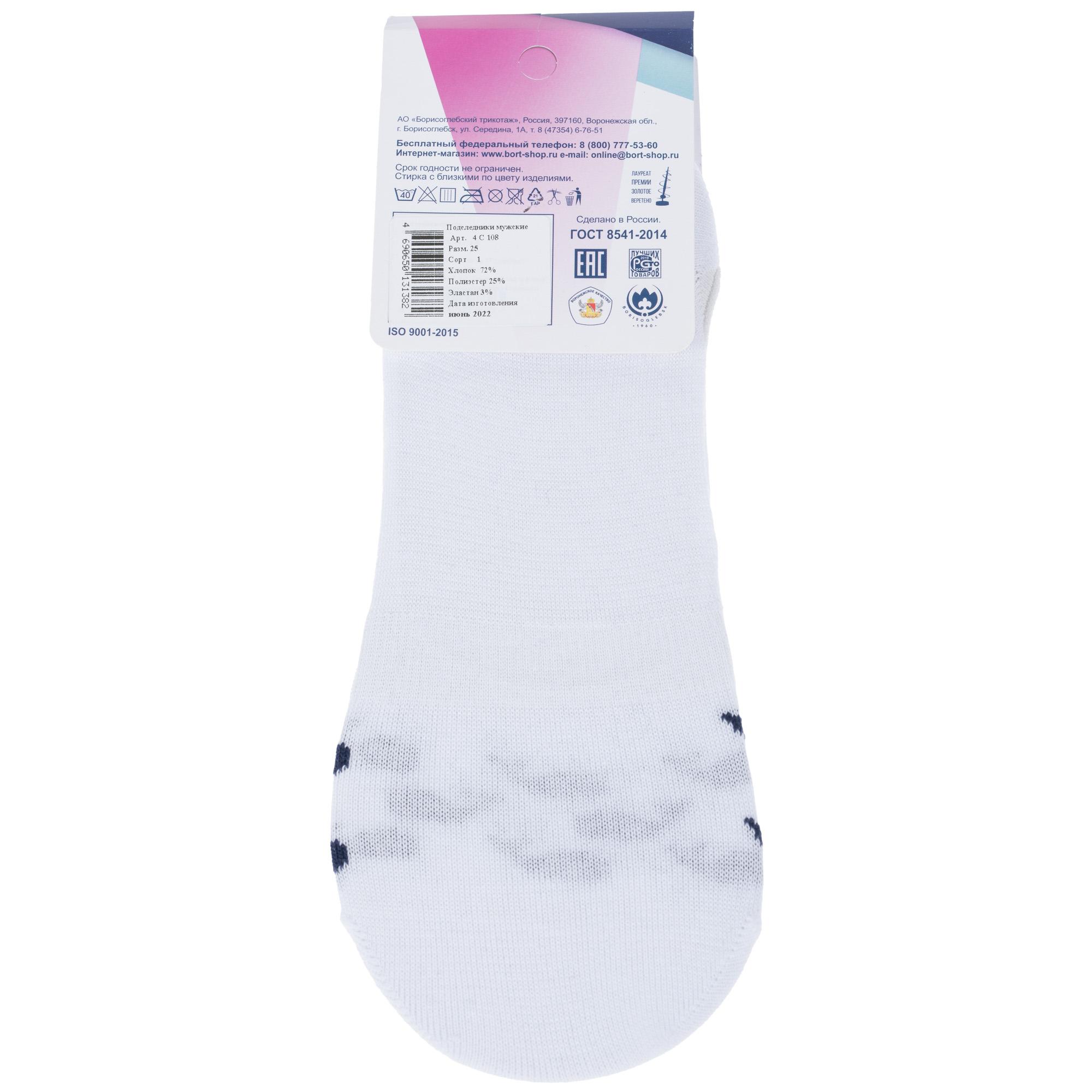 Летние мужские подследники, цвет белый, с силиконовой вставкой, повседневные, возможно бесшовные, принт (рисунок): транспорт, с узором, состав: 72% хлопок, 25% полиэстер, 3% эластан, арт. 4С108. Производитель «АО Борисоглебский трикотаж, Воронежская обл, Россия» под брендом «Борисоглебский трикотаж».