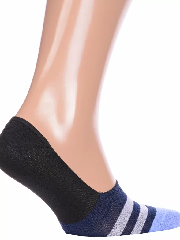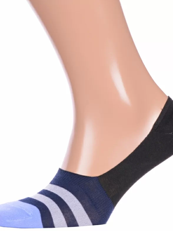 Летние мужские подследники, цвет голубой-черный, повседневные, шов обычный (не бесшовные), принт (рисунок): полоски, с узором, состав: 75% хлопок, 23% полиамид, 2% эластан, арт. ННМ18-02. Производитель «Китай, страна бренда - Россия» под брендом «Hobby line».