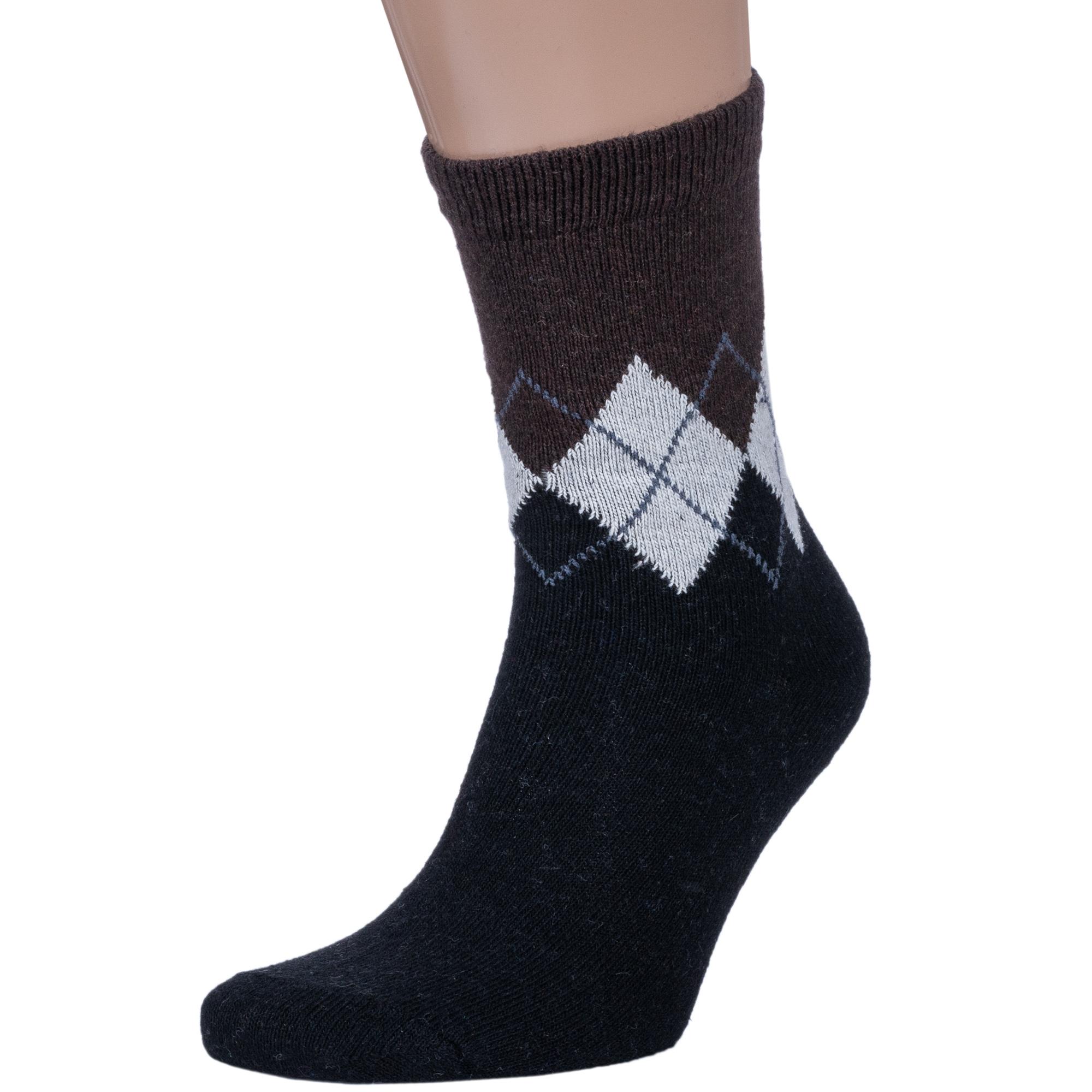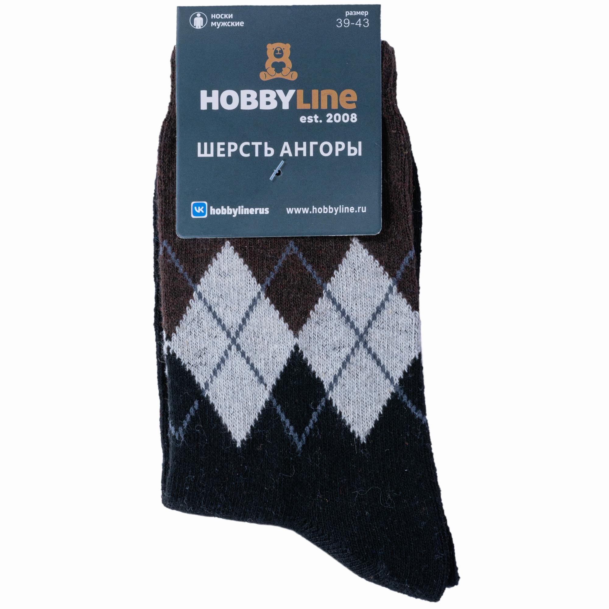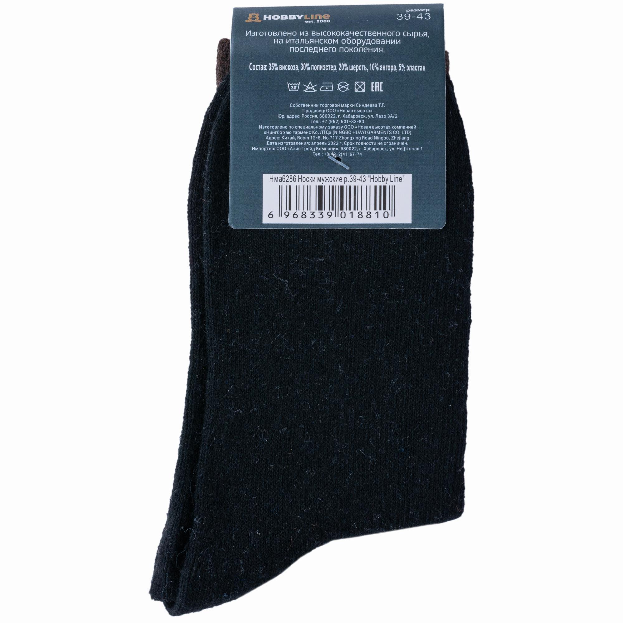 Зимние средней длины мужские носки, цвет черный, теплые, повседневные, шов обычный (не бесшовные), принт (рисунок): аргайл, с узором, геометрия, состав: 35% вискоза, 30% полиэстер, 20% шерсть, 10% ангора, 5% эластан, арт. 6286. Производитель «Китай, страна бренда - Россия» под брендом «Hobby line».