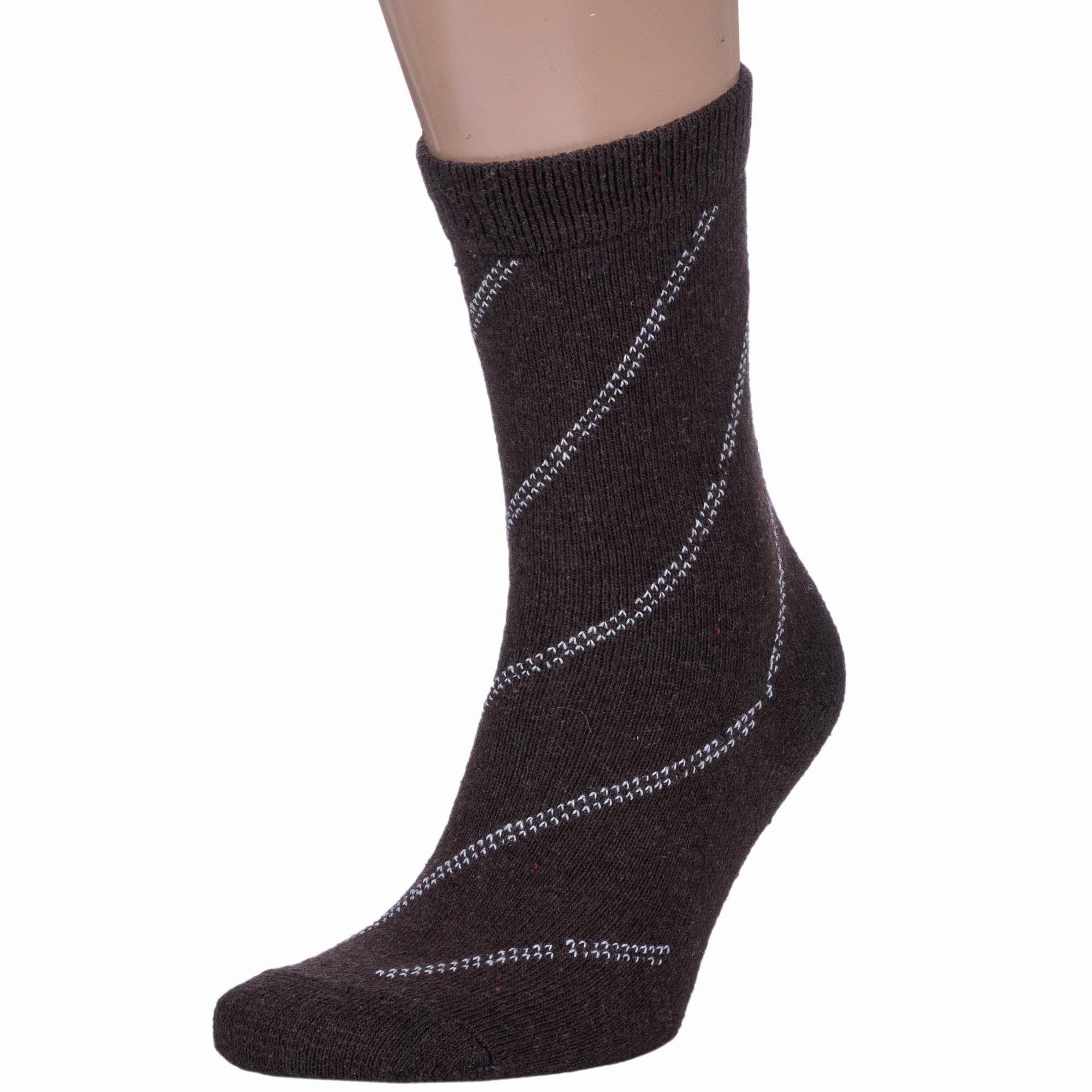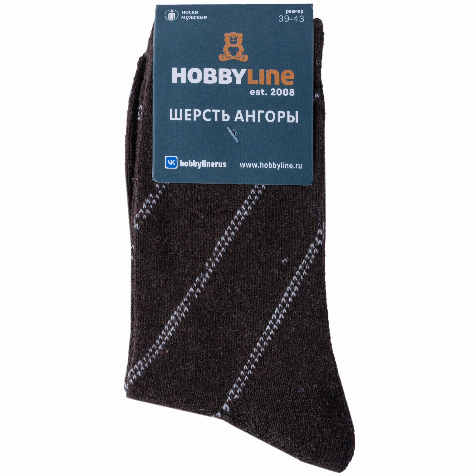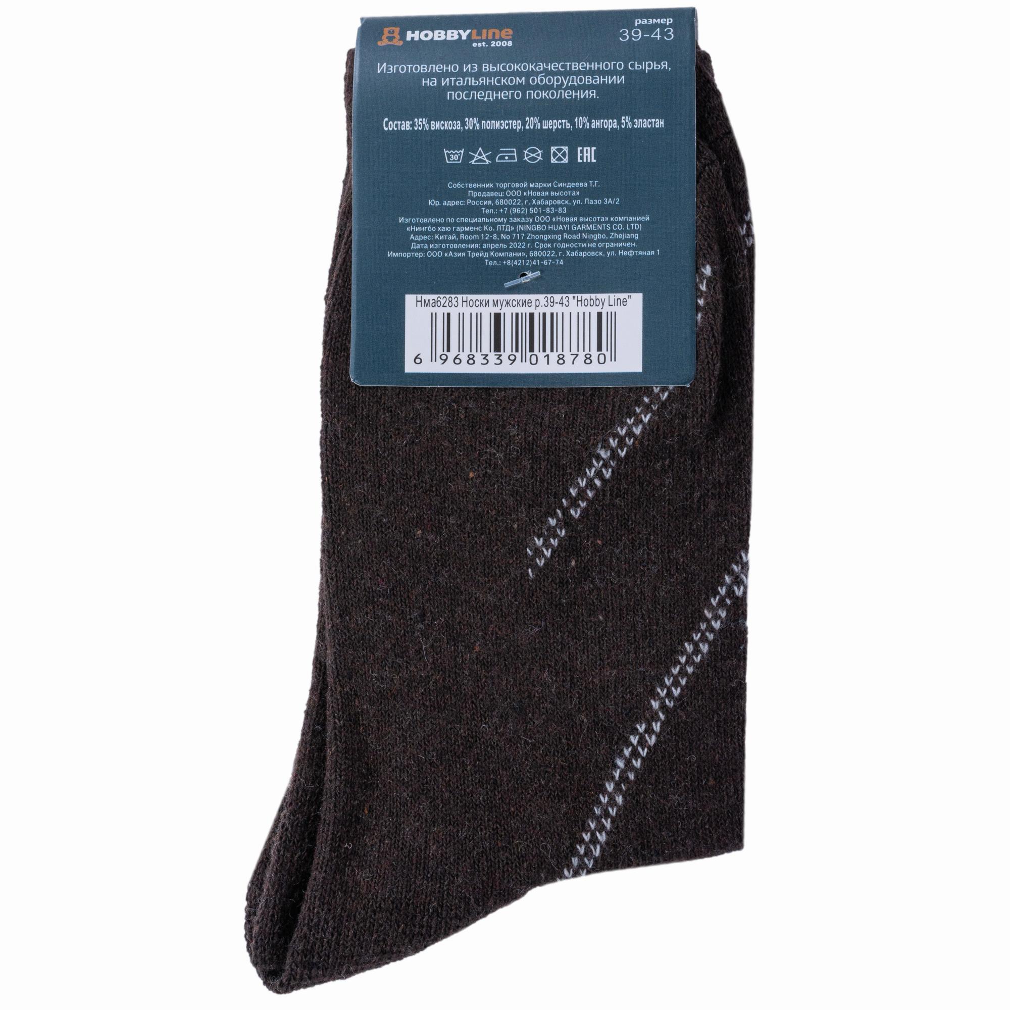 Зимние средней длины мужские носки, цвет коричневый, теплые, классические, шов обычный (не бесшовные), принт (рисунок): полоски, с узором, состав: 35% вискоза, 30% полиэстер, 20% шерсть, 10% ангора, 5% эластан, арт. 6283. Производитель «Китай, страна бренда - Россия» под брендом «Hobby line».
