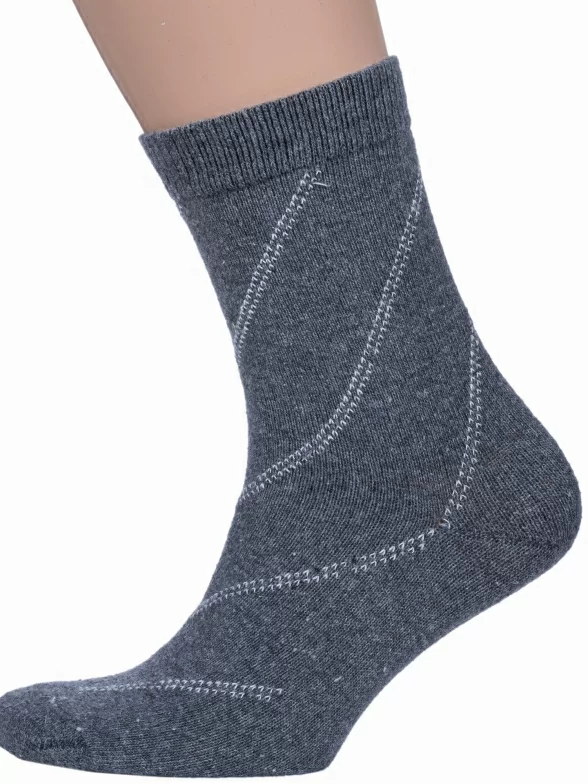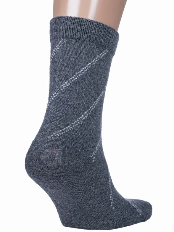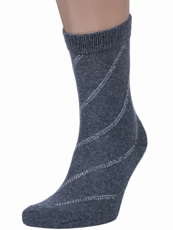 Зимние средней длины мужские носки, цвет серый, теплые, классические, шов обычный (не бесшовные), принт (рисунок): полоски, с узором, состав: 35% вискоза, 30% полиэстер, 20% шерсть, 10% ангора, 5% эластан, арт. 6283. Производитель «Китай, страна бренда - Россия» под брендом «Hobby line».