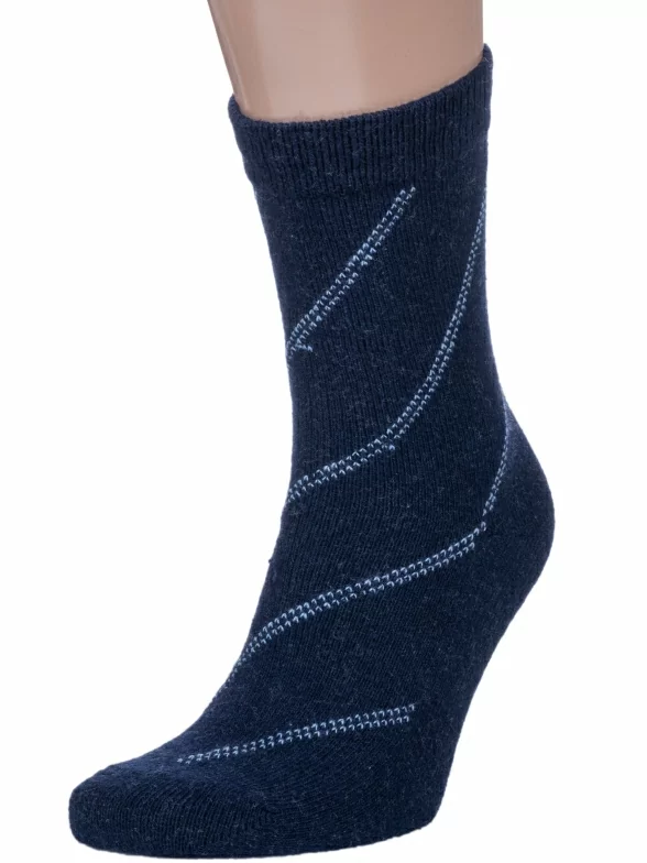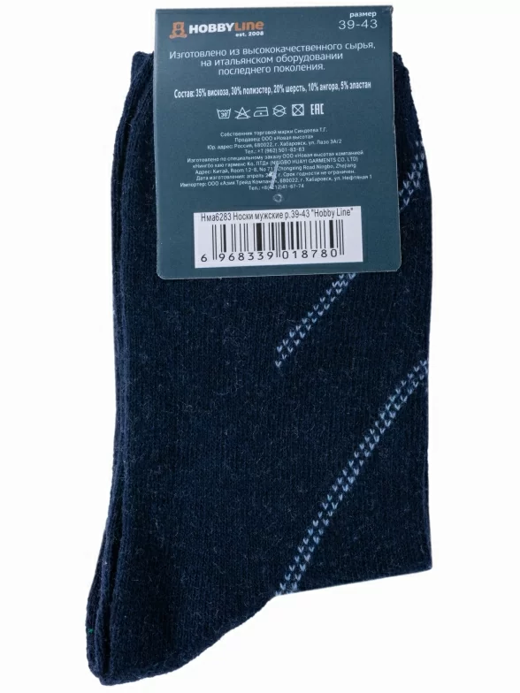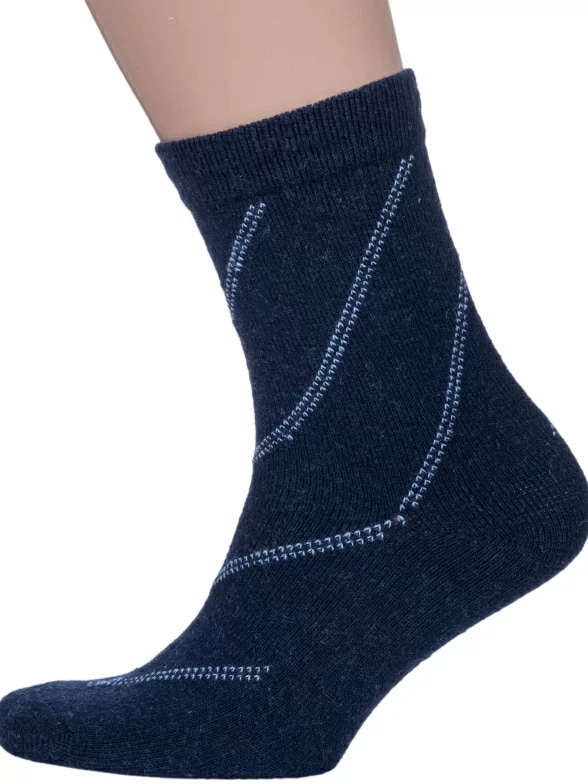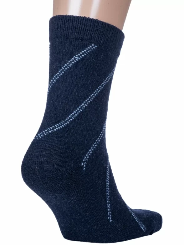 Зимние средней длины мужские носки, цвет темно-синий, теплые, классические, шов обычный (не бесшовные), принт (рисунок): полоски, с узором, состав: 35% вискоза, 30% полиэстер, 20% шерсть, 10% ангора, 5% эластан, арт. 6283. Производитель «Китай, страна бренда - Россия» под брендом «Hobby line».