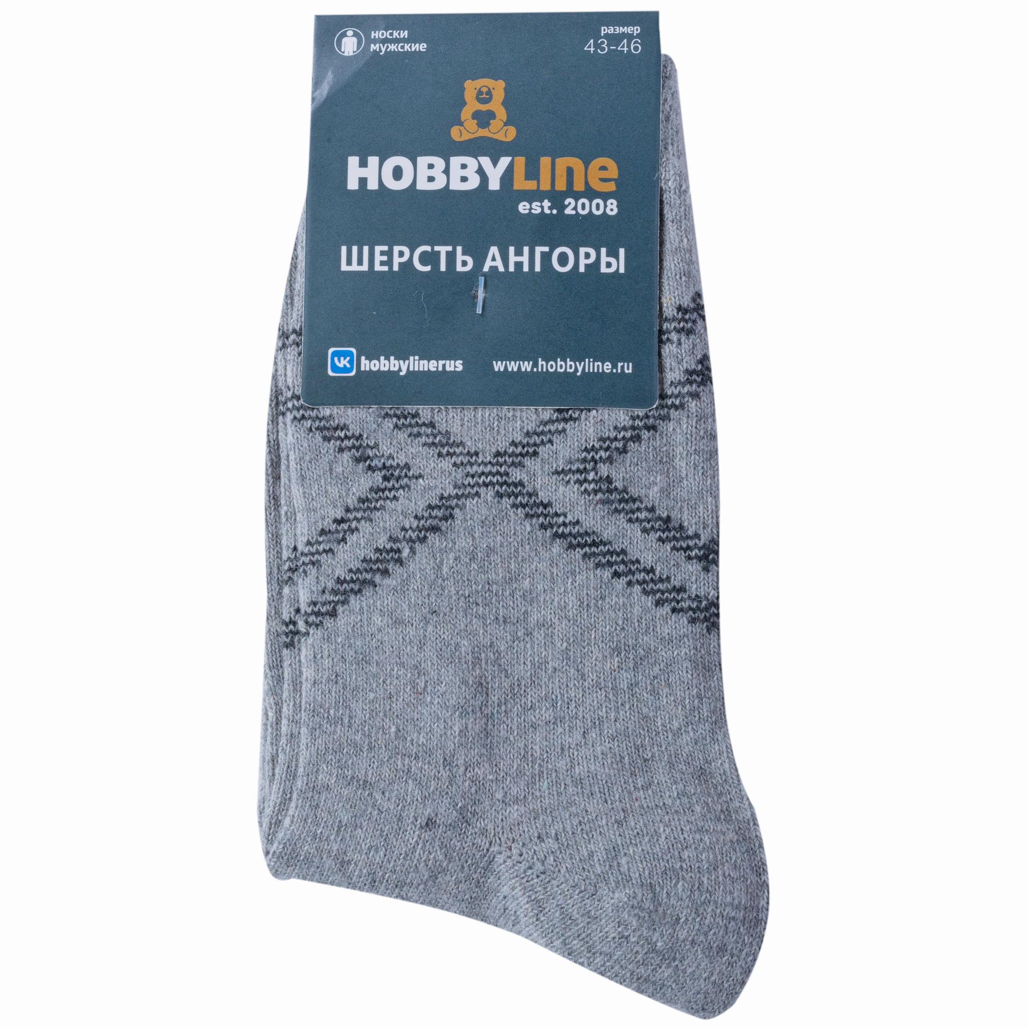 Зимние средней длины мужские носки, цвет светло-серый, теплые, классические, шов обычный (не бесшовные), принт (рисунок): геометрия, с узором, состав: 35% вискоза, 30% полиэстер, 20% шерсть, 10% ангора, 5% эластан, арт. 6289. Производитель «Китай, страна бренда - Россия» под брендом «Hobby line».