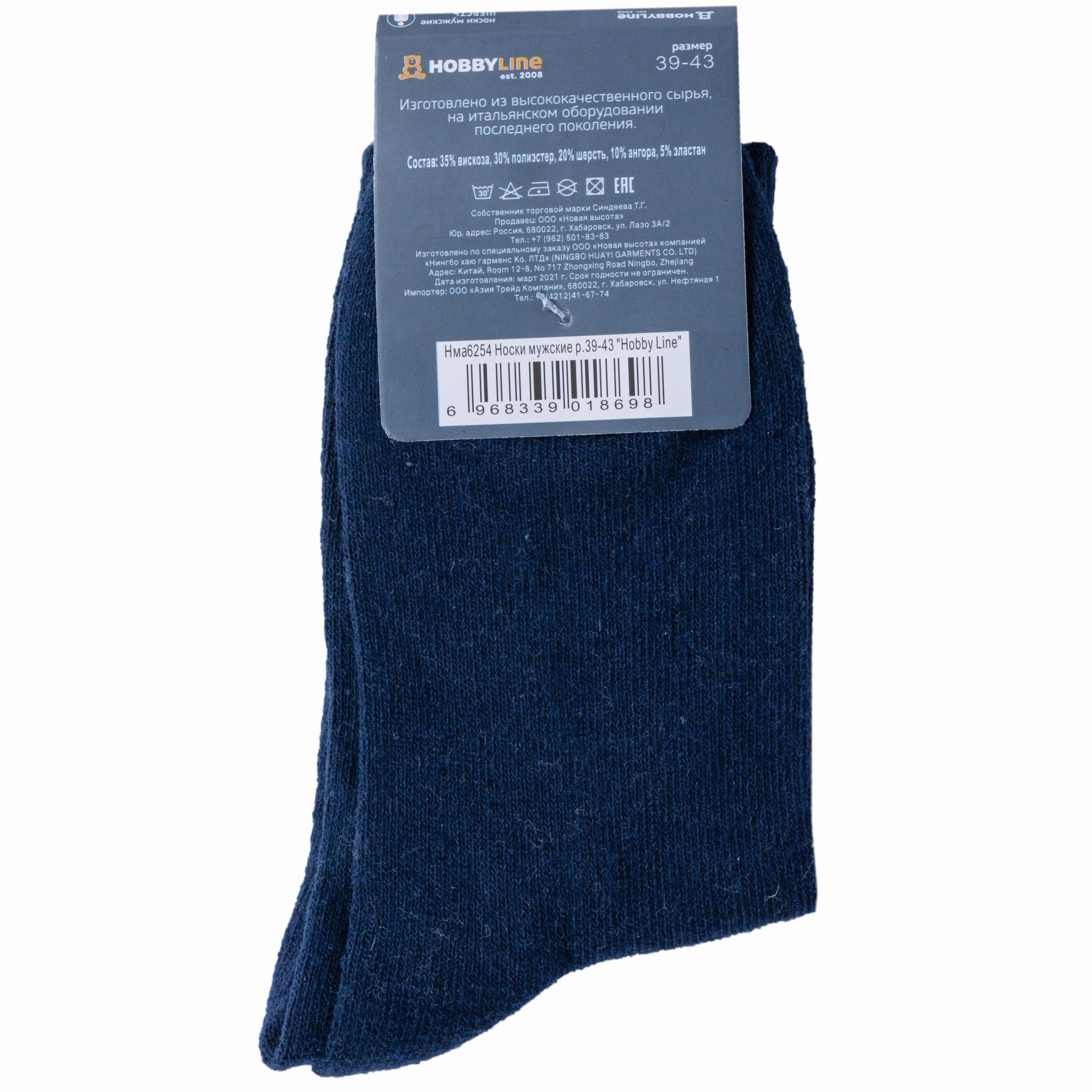 Зимние средней длины мужские носки, цвет темно-синий, теплые, классические, шов обычный (не бесшовные), принт (рисунок): однотонный, без рисунков/узоров, состав: 35% вискоза, 30% полиэстер, 20% шерсть, 10% ангора, 5% эластан, арт. 6254. Производитель «Китай, страна бренда - Россия» под брендом «Hobby line».