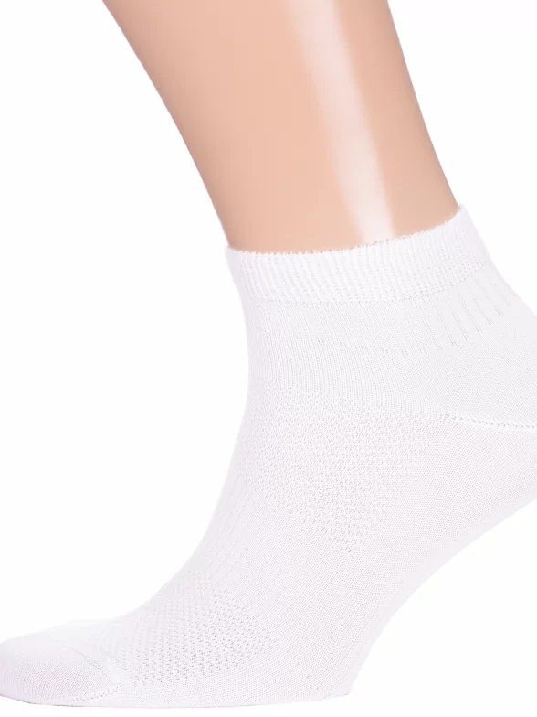 Круглогодичные укороченные мужские носки, цвет белый, спортивные, в сеточку, состав: 85% бамбук, 10% полиамид, 5% эластан (лайкра), арт. Н19. Производитель «ИП Мурзаков В.А., Ставропольский край, Россия» под брендом «Lorenzline».