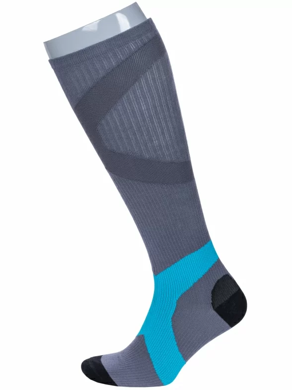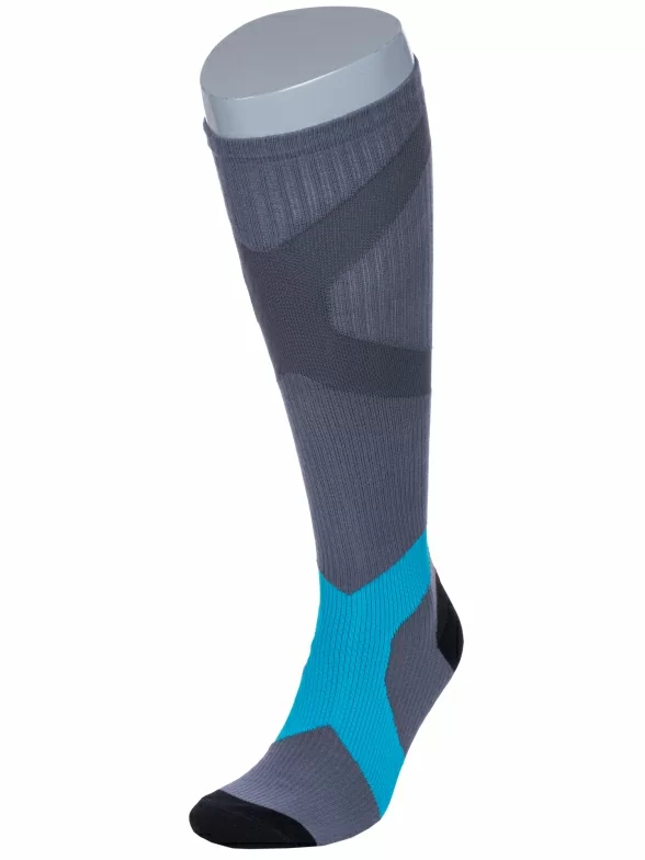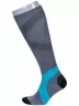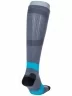Спортивные мужские гольфы, вывязанные в рубчик, сделаны из пряжи на основе хлопка с добавлением полиэстера и эластана. Модель украшена различными видами геометрических рисунков.
