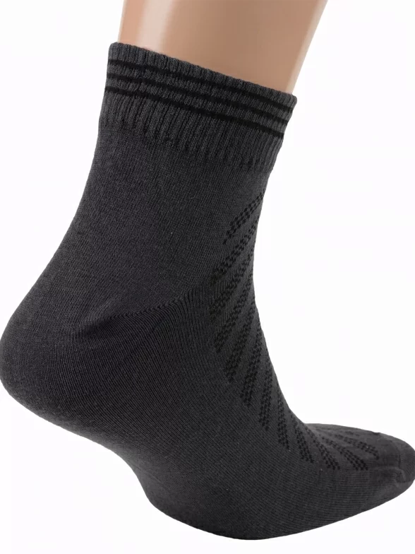 Круглогодичные или летние укороченные мужские носки, цвет темно-серый, в сеточку, спортивные, шов обычный (не бесшовные), принт (рисунок): спортивные, с узором, состав: 95% хлопок, 5% эластан, арт. Н014. Производитель «Алена (г. Чебоксары)» Россия под брендом «Алена».