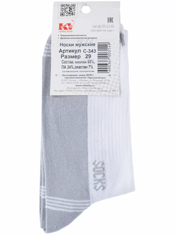 Мужские спортивные носки "Красная ветка", С-343, БЕЛО-СЕРЫЕ