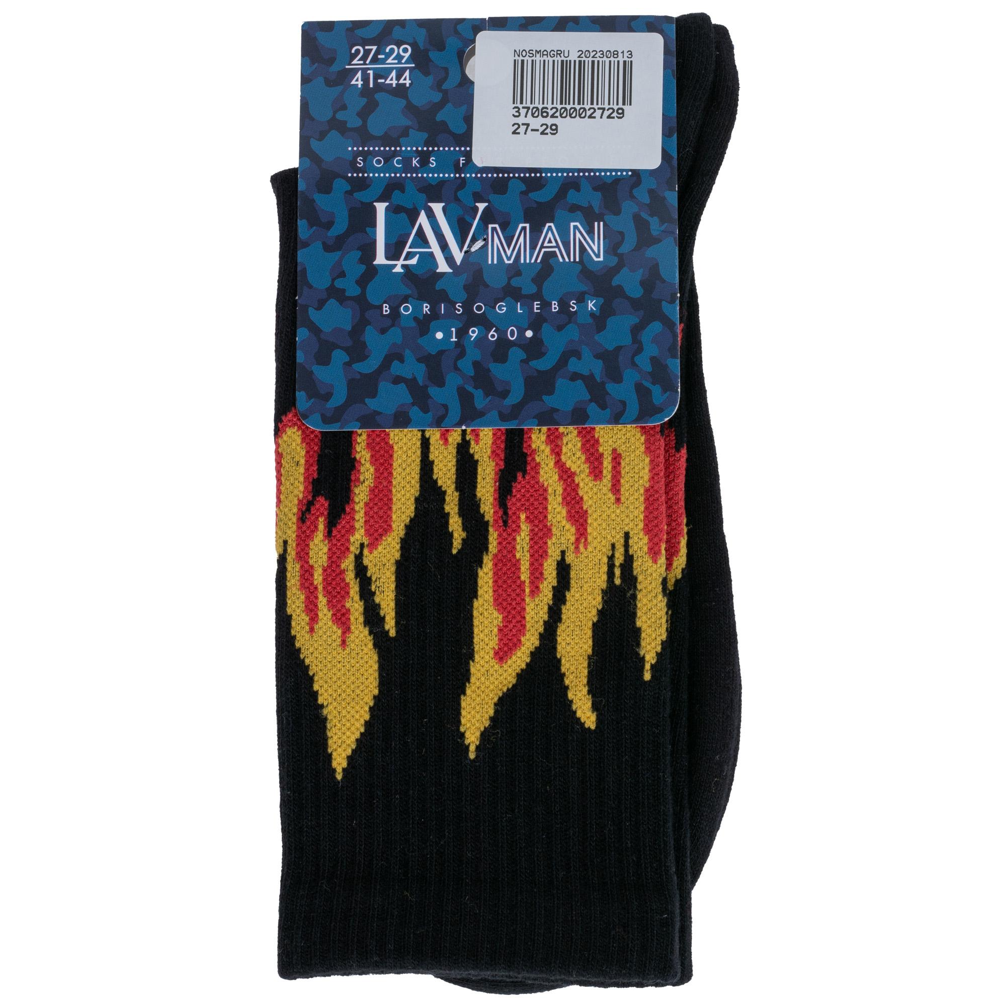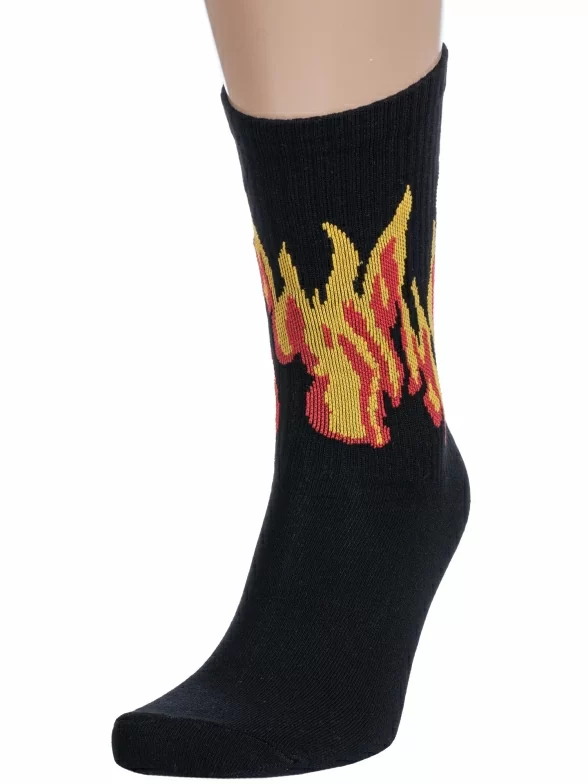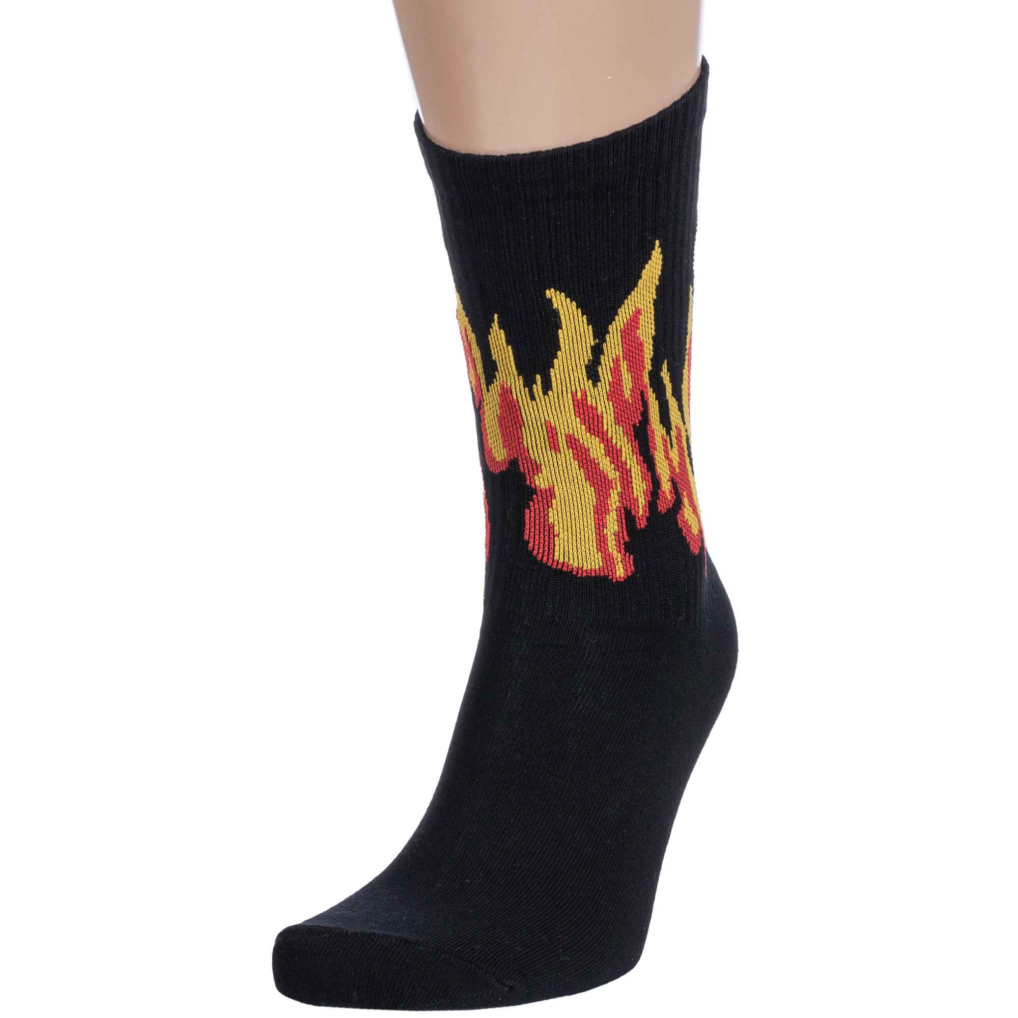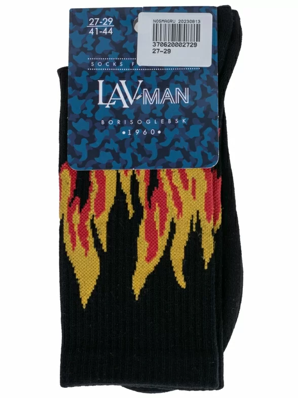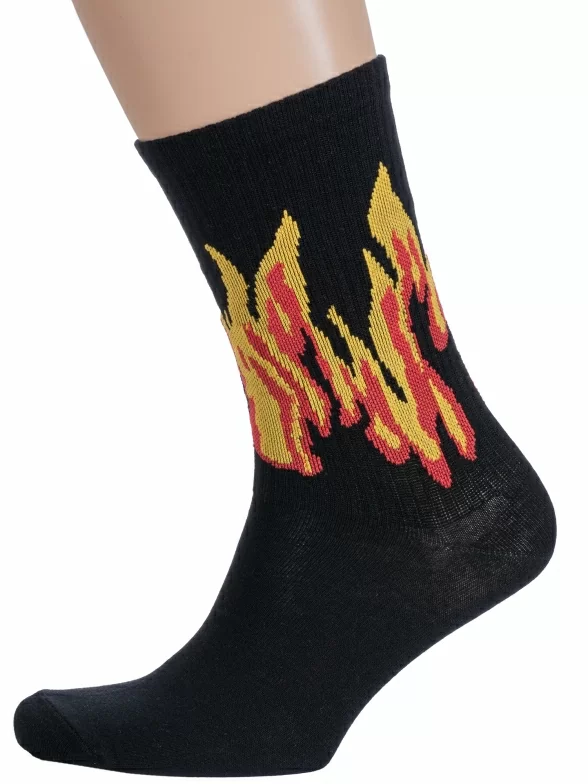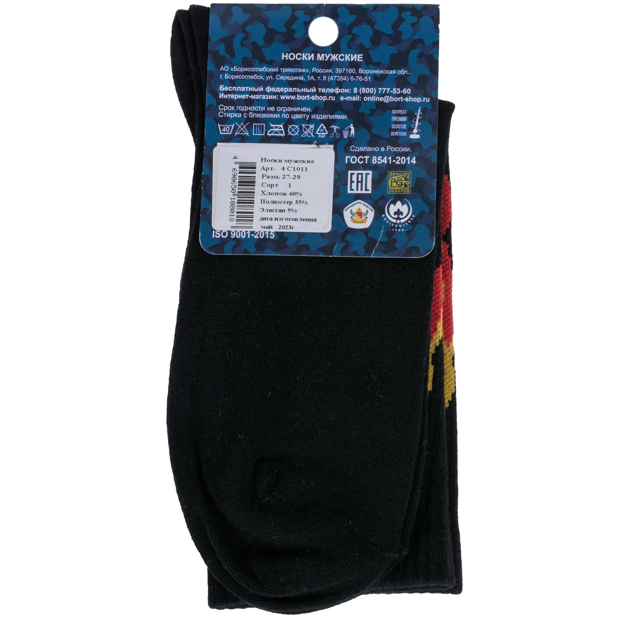 Круглогодичные средней длины мужские носки, цвет черный, спортивные, повседневные, шов обычный (не бесшовные), принт (рисунок): огонь, в рубчик, крупные контрастные рисунки, состав: 60% хлопок, 35% полиэстер, 5% эластан, арт. 4С1011. Производитель «АО Борисоглебский трикотаж, Воронежская обл, Россия» под брендом «Борисоглебский трикотаж».