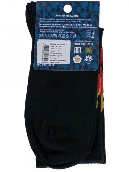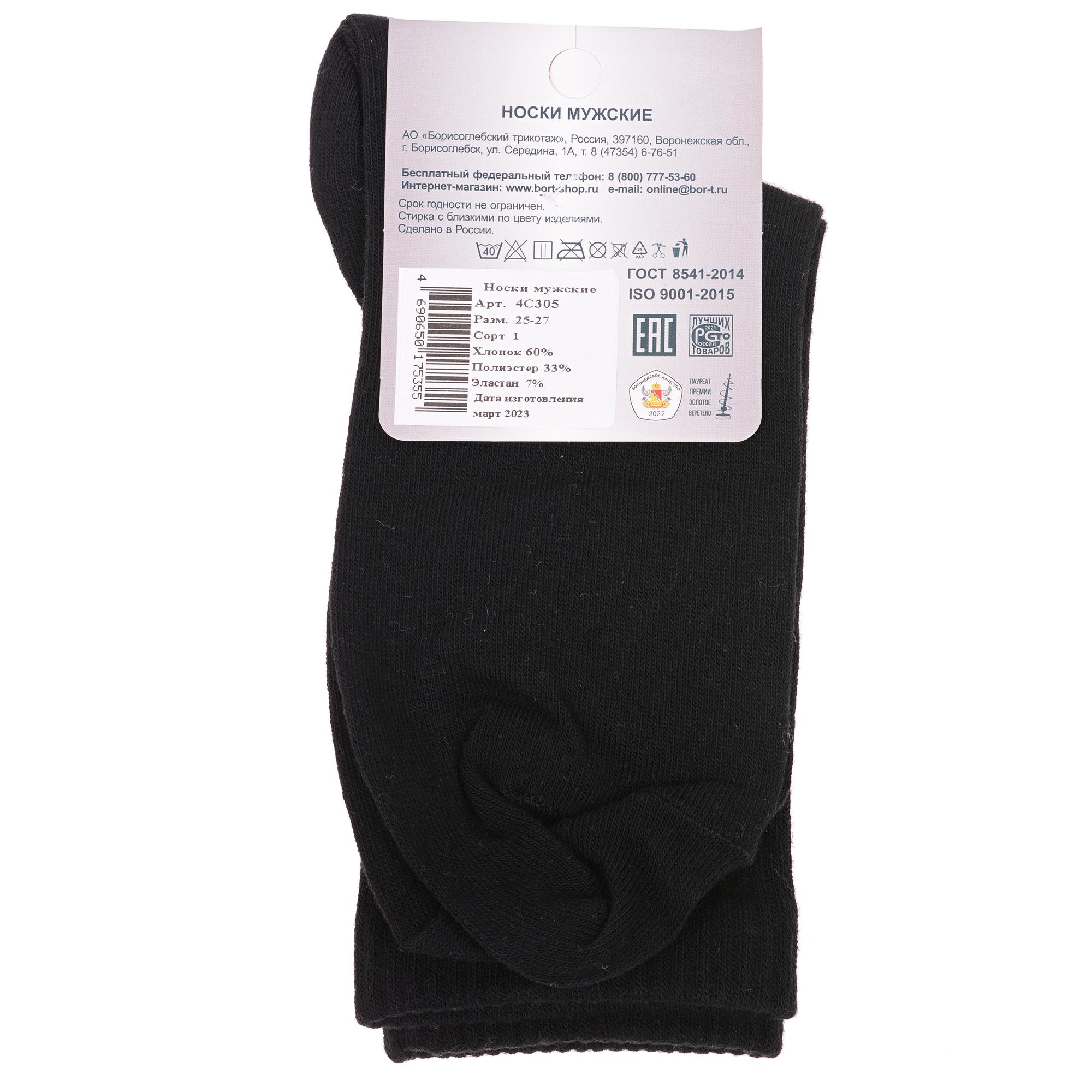 Круглогодичные средней длины мужские носки, цвет черный, спортивные, шов обычный (не бесшовные), принт (рисунок): в рубчик, с узором, однотонный, состав: 60% хлопок, 33% полиэстер, 7% эластан, арт. 4С305. Производитель «АО Борисоглебский трикотаж, Воронежская обл, Россия» под брендом «Борисоглебский трикотаж».