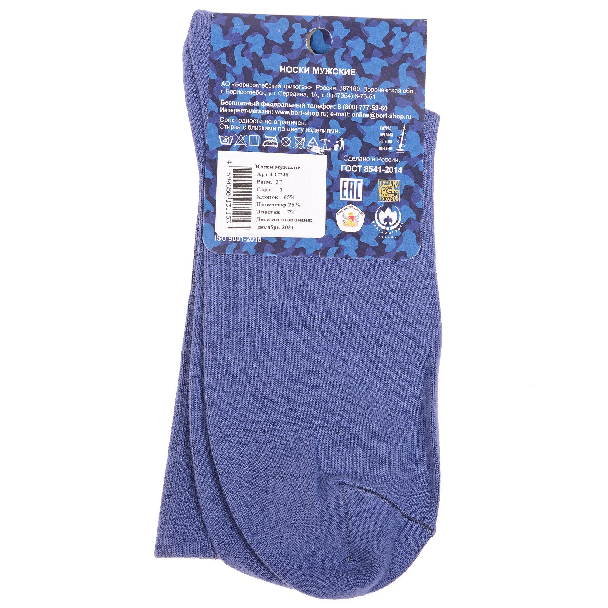 Круглогодичные средней длины мужские носки, цвет джинс, спортивные, повседневные, шов обычный (не бесшовные), принт (рисунок): милитари, в рубчик, с узором, состав: 65% хлопок, 28% полиэстер, 7% эластан, арт. 4С246. Производитель «АО Борисоглебский трикотаж, Воронежская обл, Россия» под брендом «Борисоглебский трикотаж».