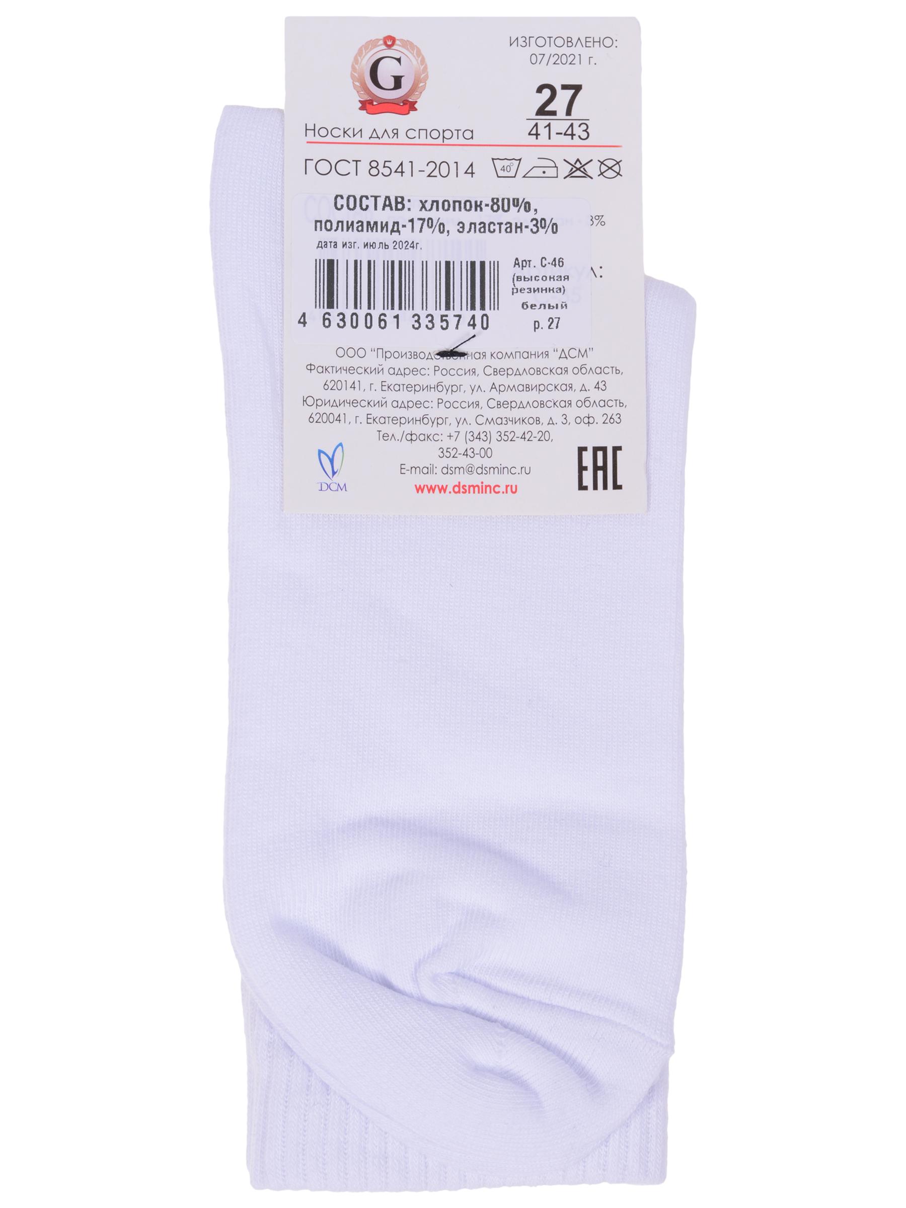 Круглогодичные средней длины мужские носки, цвет белый, спортивные, шов обычный (не бесшовные), принт (рисунок): однотонный, без рисунков / узоров, состав: 80% хлопок, 17% полиамид, 3% эластан, арт. С-46. Производитель «ООО Производственная компания "ДСМ", Россия» под брендом «Grand line».