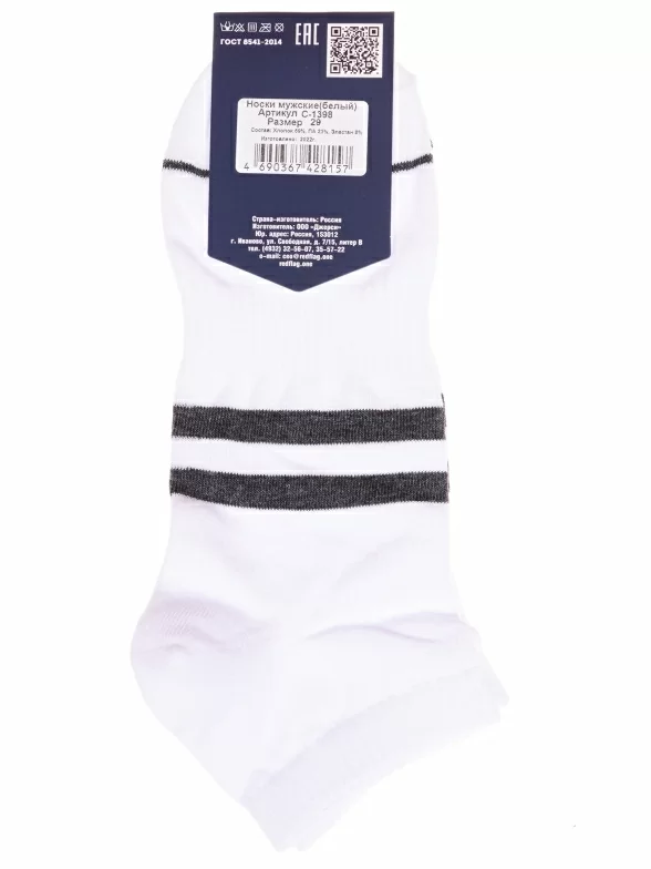 Круглогодичные короткие мужские носки, цвет белый, спортивные, состав: 69% хлопок, 23% полиамид, 8% эластан. Производитель «КРАСНАЯ ВЕТКА» Россия под брендом «Красная ветка».