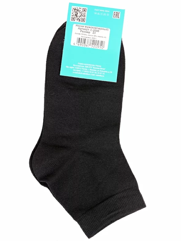 Круглогодичные укороченные мужские носки, цвет черный, спортивные, состав: 50% полиэстр, 46% хлопок, 4% эластан, арт. С-2045. Производитель «КРАСНАЯ ВЕТКА» Россия под брендом «Красная ветка».