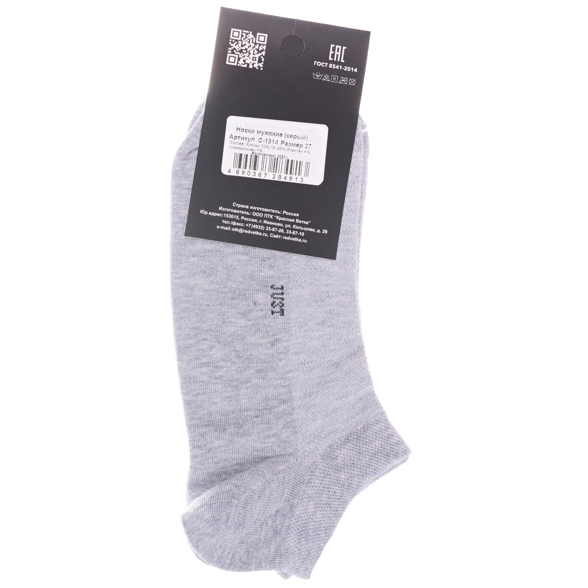 Круглогодичные ультракороткие мужские носки, цвет серый, спортивные, в сеточку, классические, возможно бесшовные, принт (рисунок): однотонный, без рисунков/узоров, состав: 70% хлопок, 25% полиамид, 4% эластан, 1% полипропилен, арт. С-1314. Производитель «КРАСНАЯ ВЕТКА» Россия под брендом «Красная ветка».