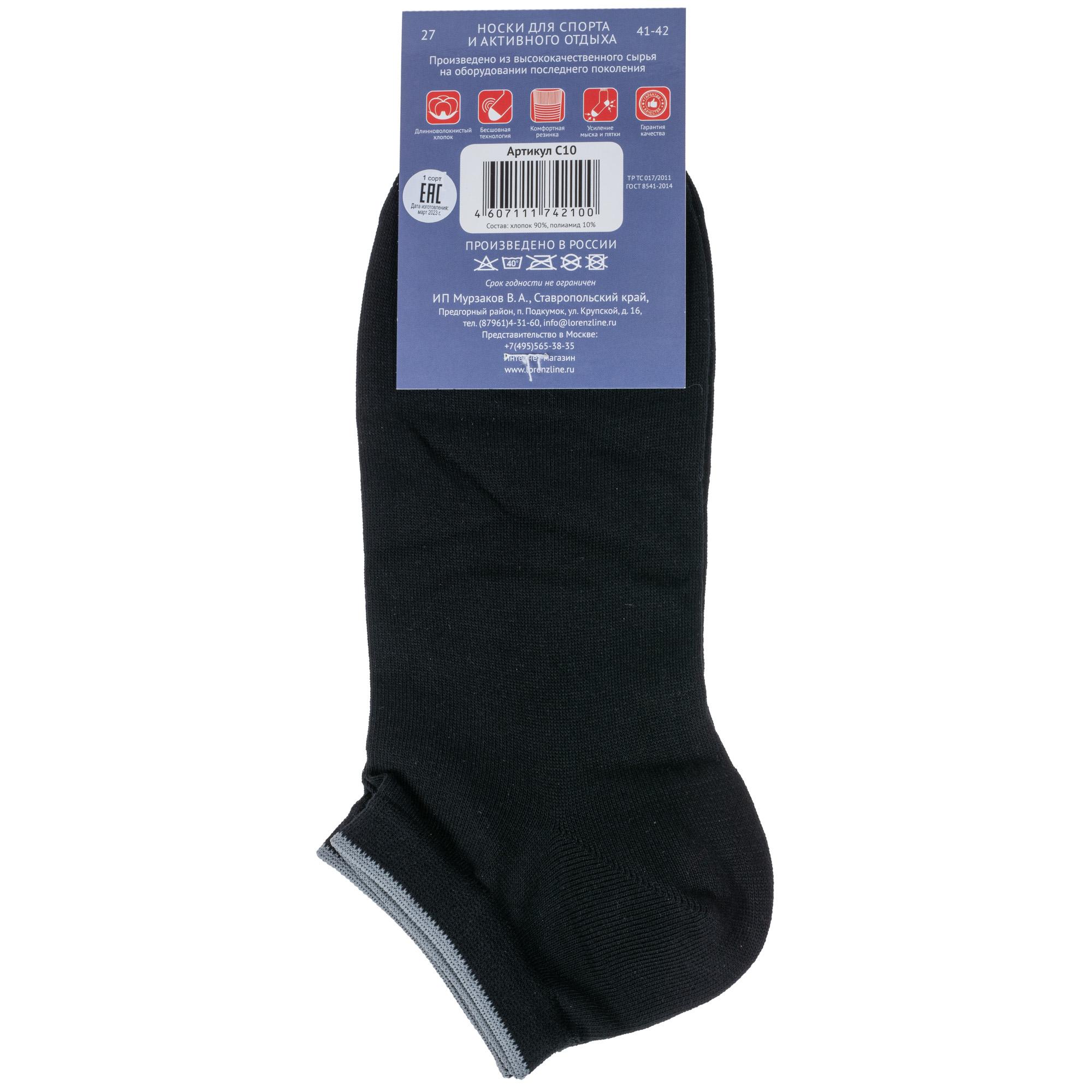 Круглогодичные короткие мужские носки, цвет черный, спортивные, шов кеттельный (бесшовная технология), принт (рисунок): контрастные пятка / мысок / резинка, однотонный, состав: 90% хлопок, 10% полиамид, арт. С10. Производитель «ИП Мурзаков В.А., Ставропольский край, Россия» под брендом «Lorenzline».