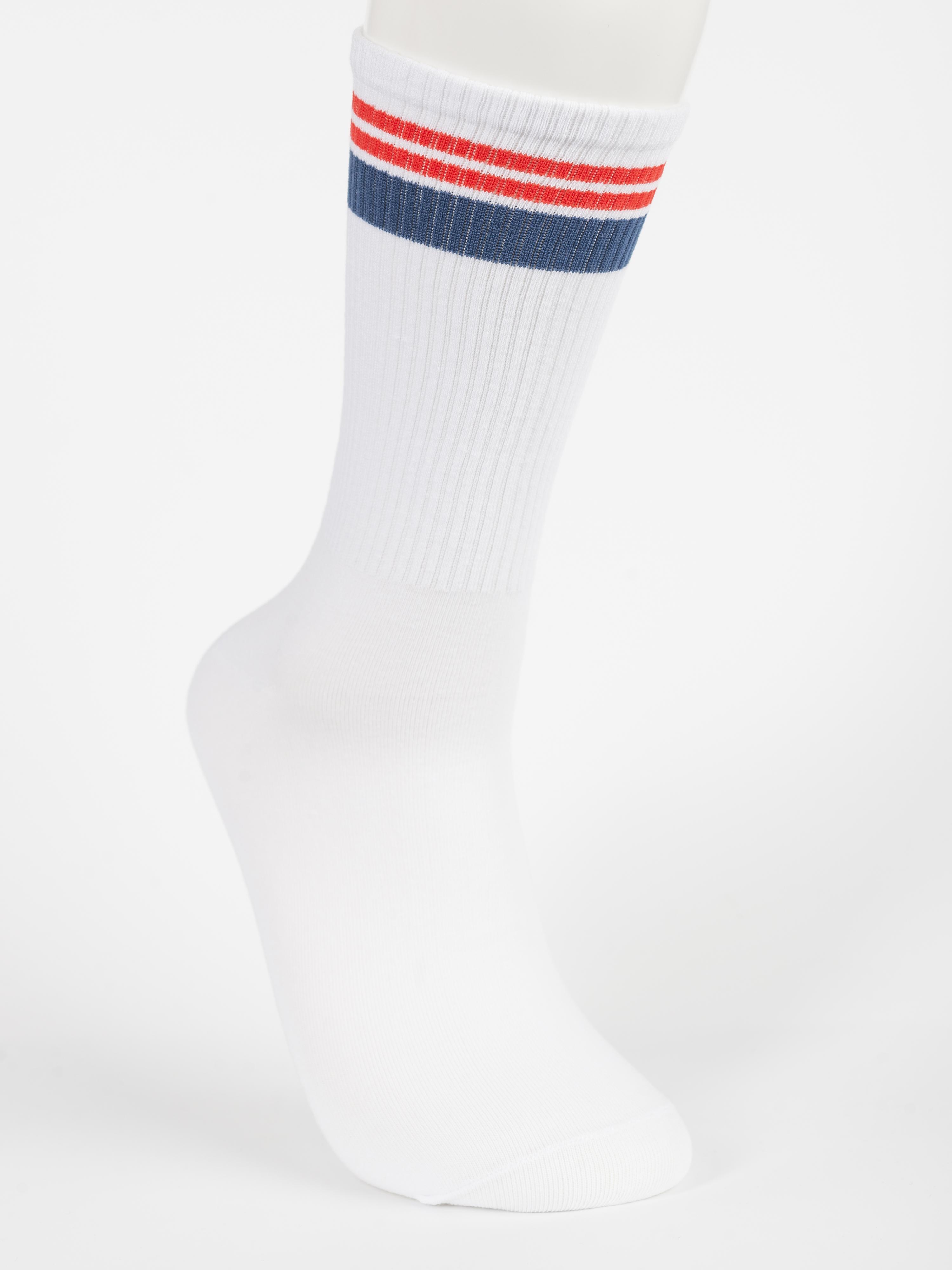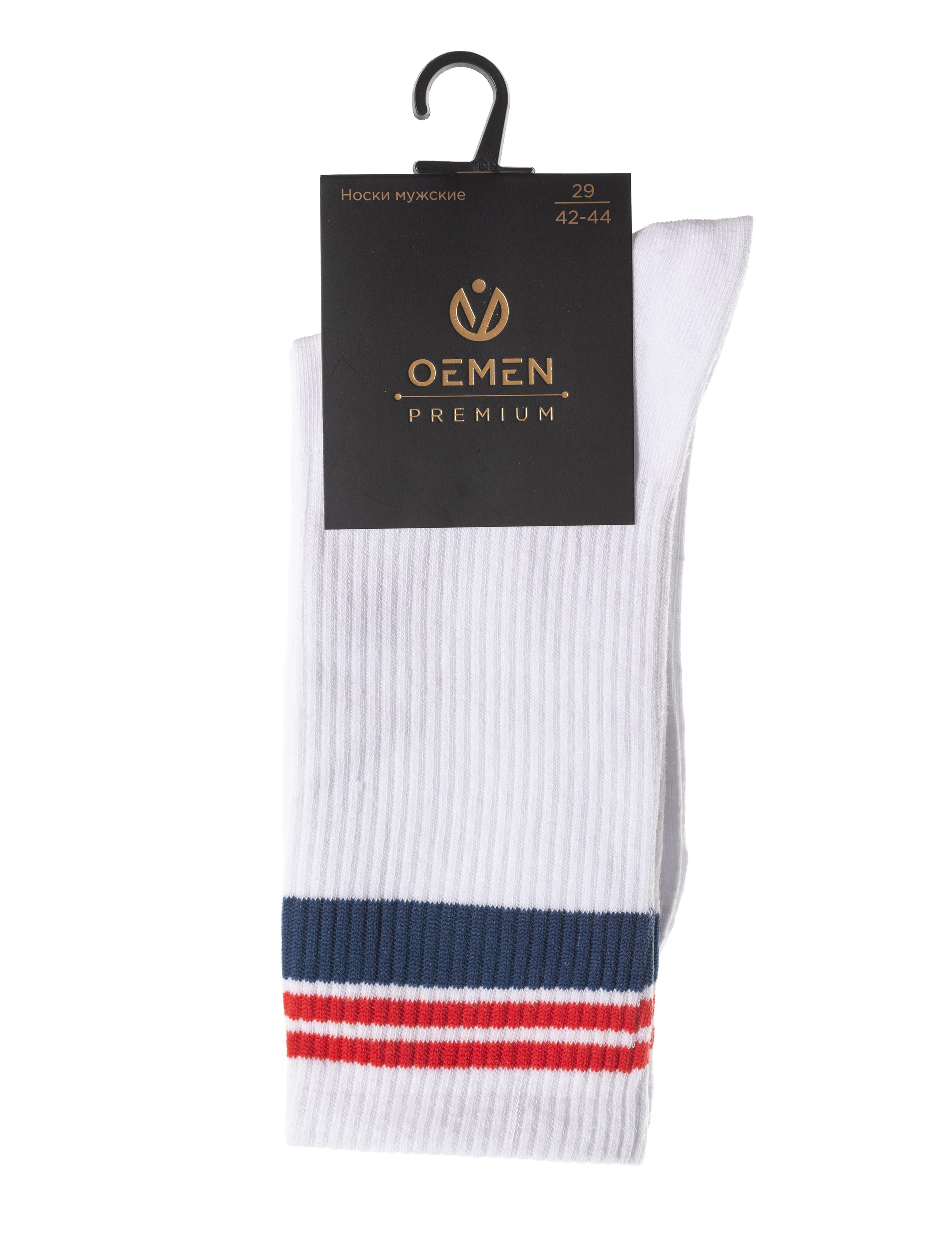 Круглогодичные средней длины мужские носки, цвет белый, спортивные, шов обычный (не бесшовные), принт (рисунок): полоски, в рубчик, состав: 80% хлопок, 17% полиамид, 3% лайкра, арт. PM485. Производитель «Oemen» Китай под брендом «Oemen».