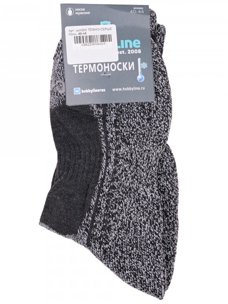 Зимние средней длины мужские носки, цвет черный, термоноски, теплые, спортивные, с махровым следом, шов обычный (не бесшовные), принт (рисунок): спортивные, с узором, состав: 91% акрил, 5% нейлон, 3% полиэстер, 1% эластан, арт. Нмт011. Производитель «Китай, страна бренда - Россия» под брендом «Hobby line».