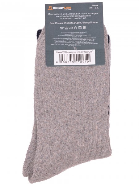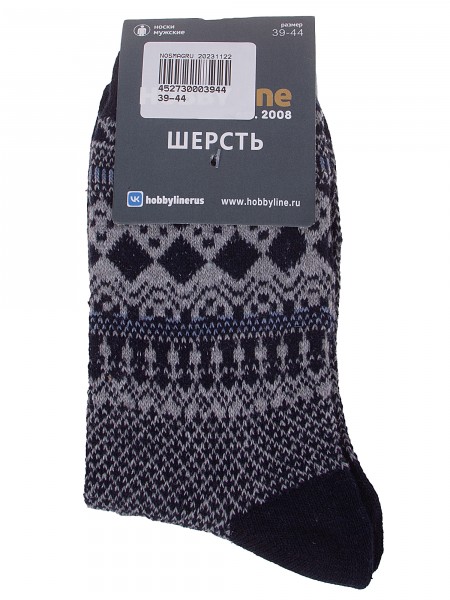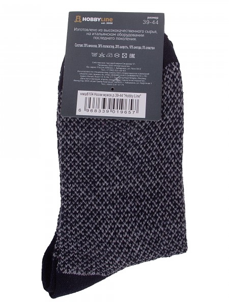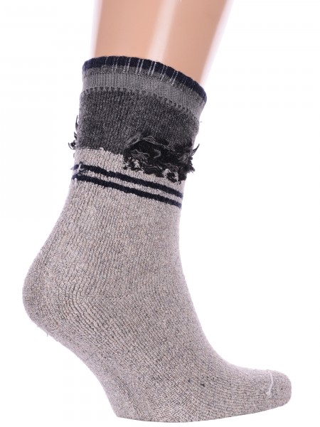 Зимние средней длины мужские носки, цвет серый, теплые, с принтом, махровые, состав: 35% вискоза, 20% шерсть, 10% ангора, 30% полиэстер, 5% эластан, арт. Нмвмв6365. Производитель «Китай, страна бренда - Россия» под брендом «Hobby line».