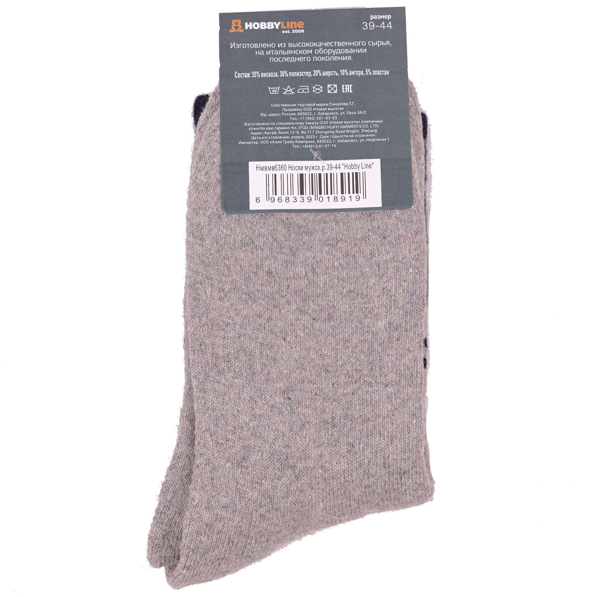 Зимние средней длины мужские носки, цвет светло-серый, теплые, с принтом, махровые, состав: 35% вискоза, 20% шерсть, 10% ангора, 30% полиэстер, 5% эластан, арт. Нмвмв6360. Производитель «Китай, страна бренда - Россия» под брендом «Hobby line».