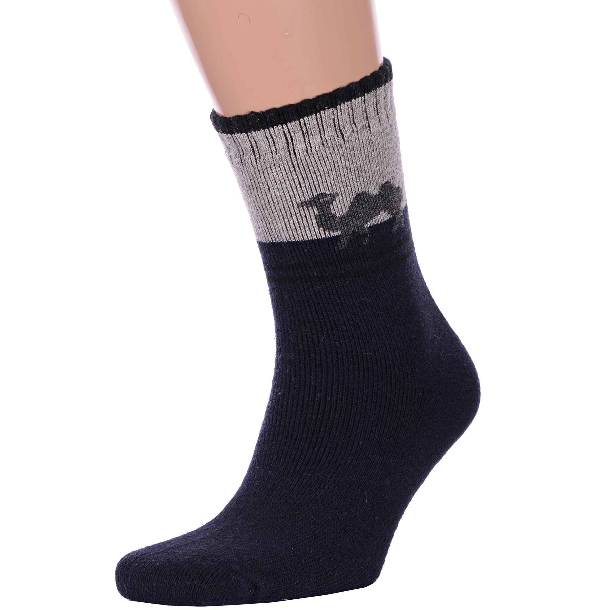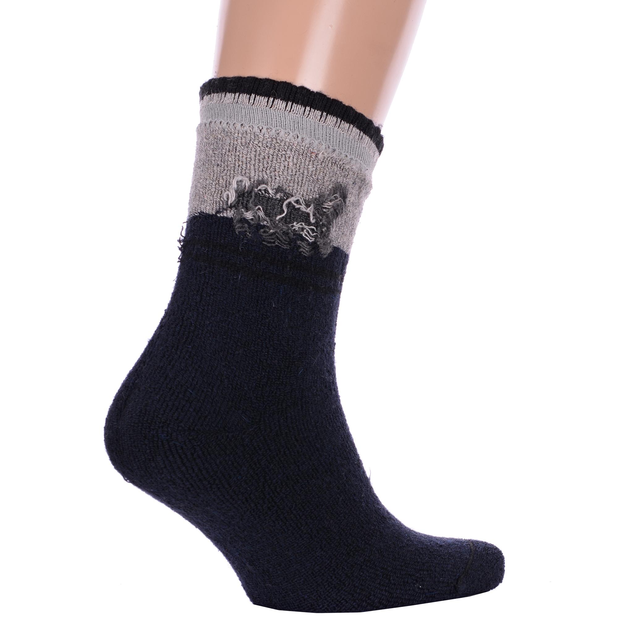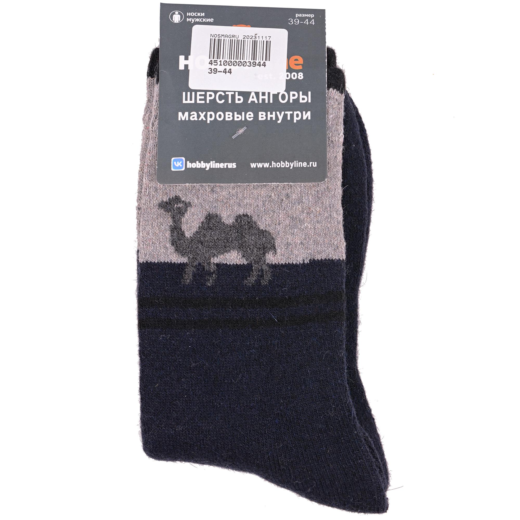 Зимние средней длины мужские носки, цвет темно-синий, теплые, с принтом, махровые, состав: 35% вискоза, 20% шерсть, 10% ангора, 30% полиэстер, 5% эластан, арт. Нмвмв6360. Производитель «Китай, страна бренда - Россия» под брендом «Hobby line».