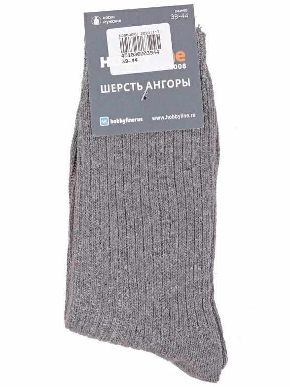 Зимние средней длины мужские носки, цвет серый, теплые, классические, состав: 35% вискоза, 20% шерсть, 10% ангора, 30% полиэстер, 5% эластан, арт. 6258. Производитель «Китай, страна бренда - Россия» под брендом «Hobby line».