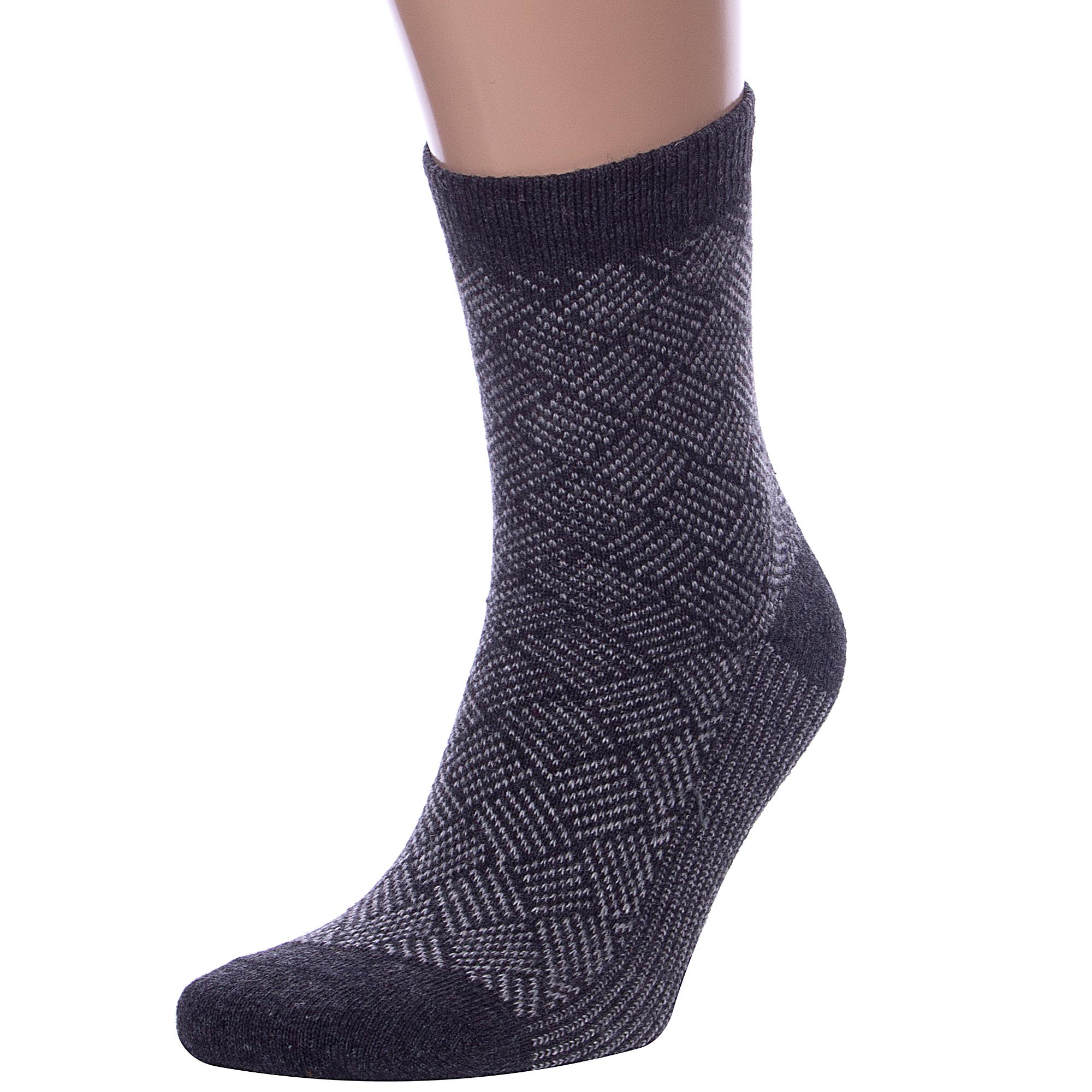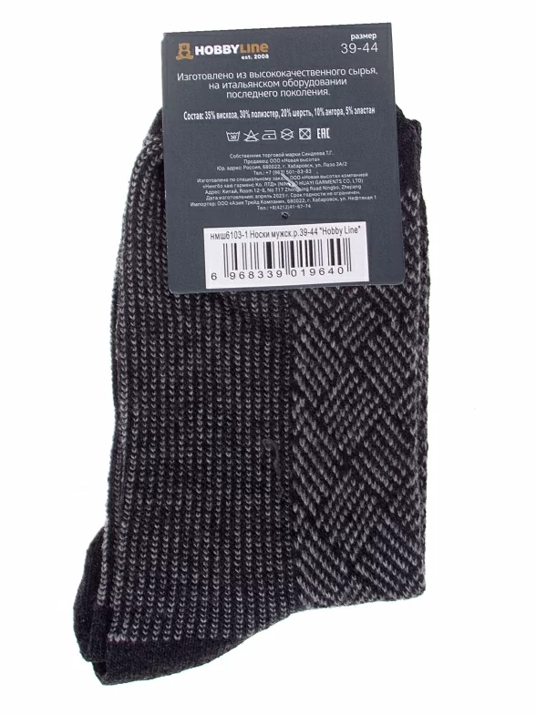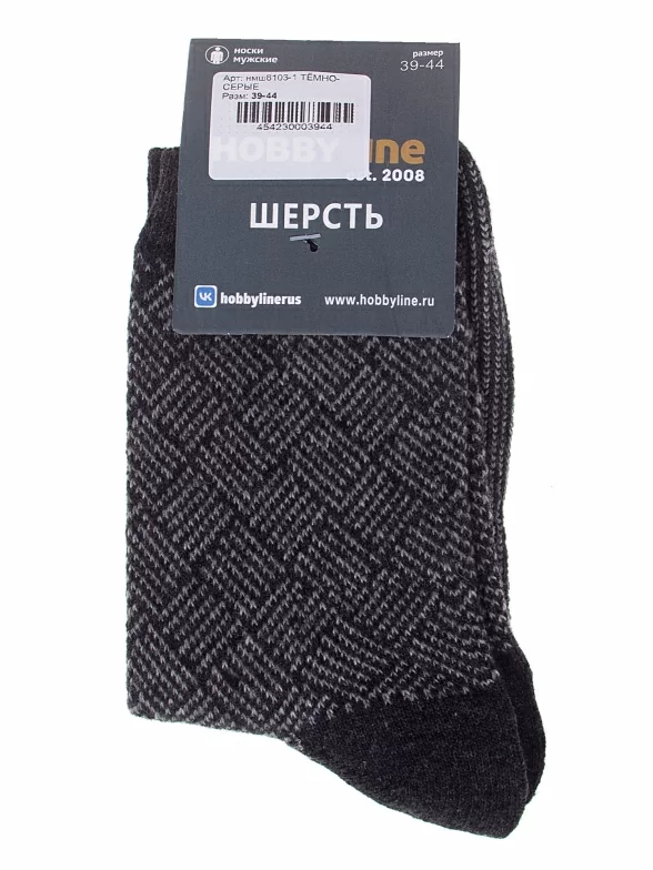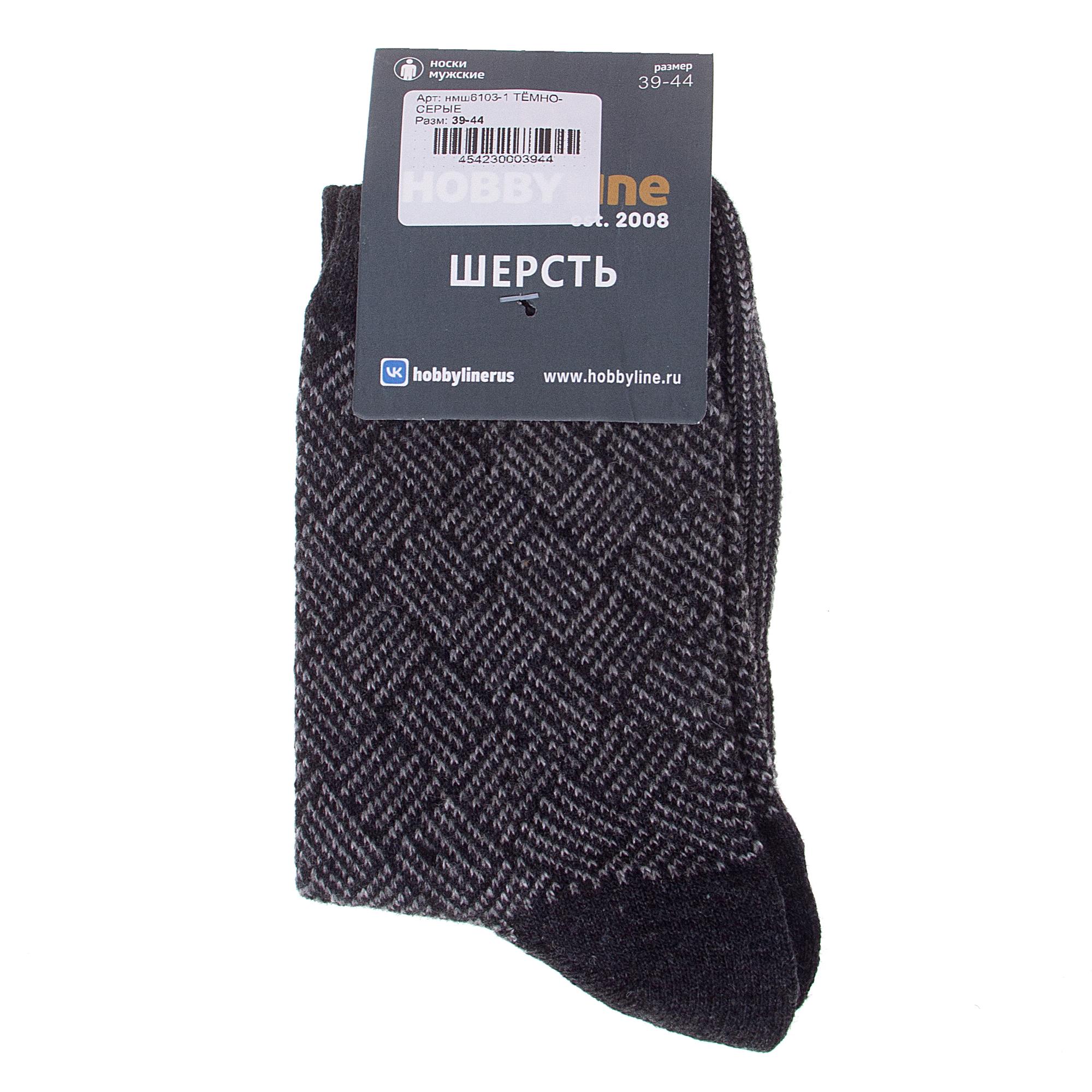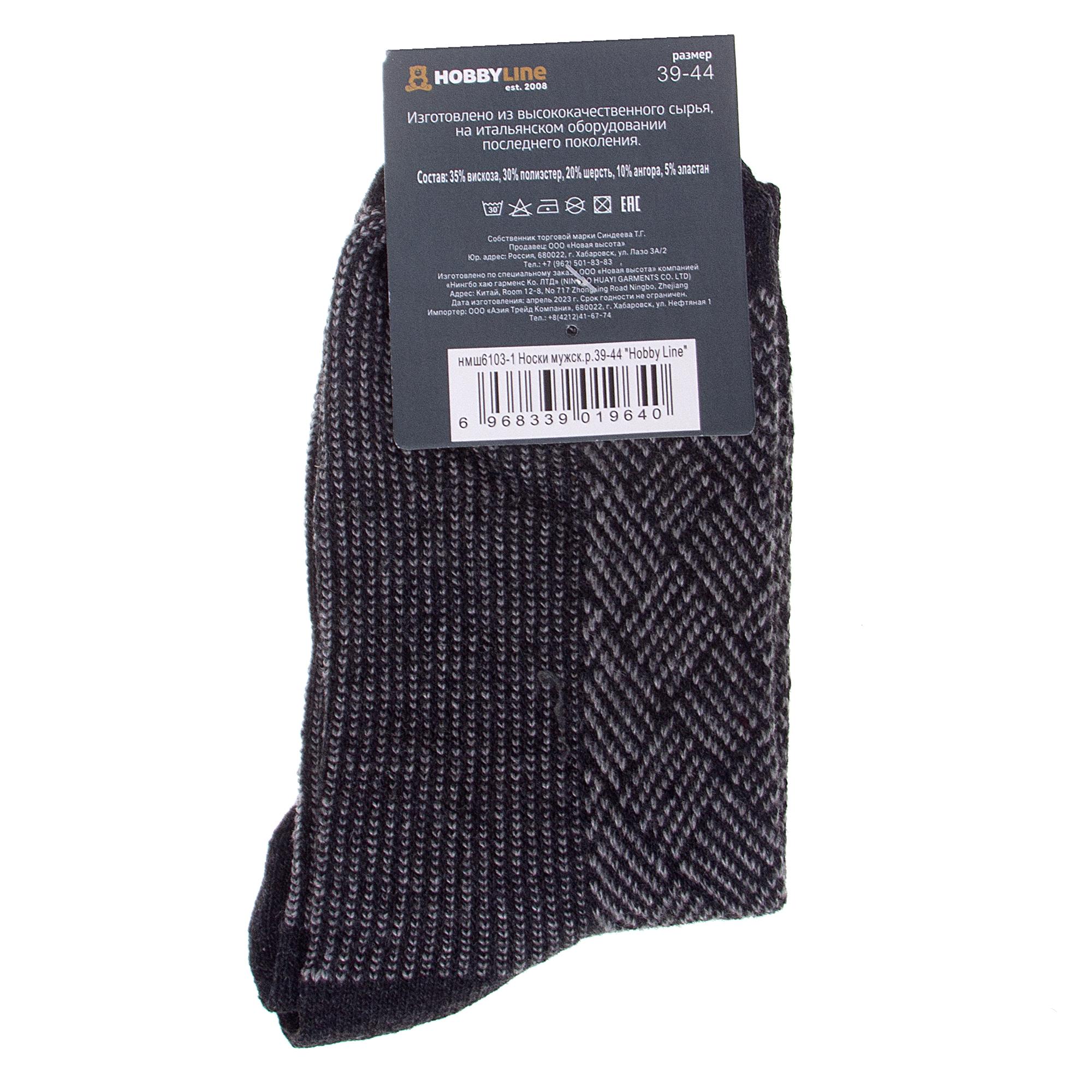 Зимние средней длины мужские носки, цвет темно-серый, с принтом, теплые, состав: 35% вискоза, 20% шерсть, 10% ангора, 30% полиэстер, 5% эластан, арт. Нмш6103-1. Производитель «Китай, страна бренда - Россия» под брендом «Hobby line».