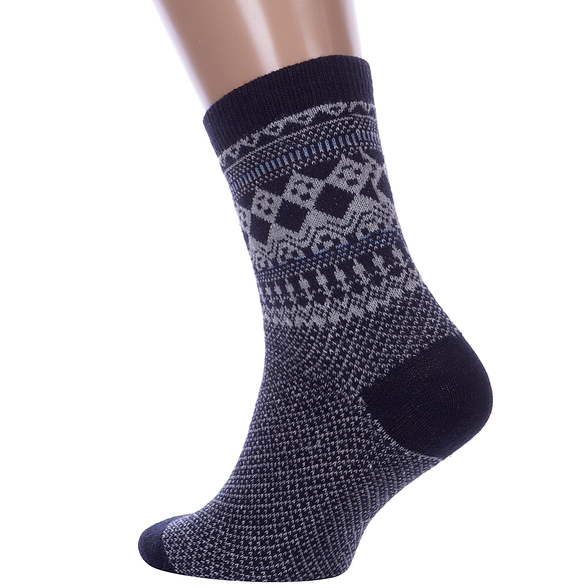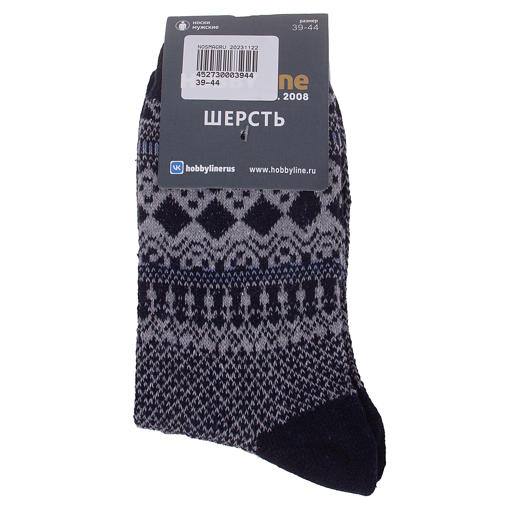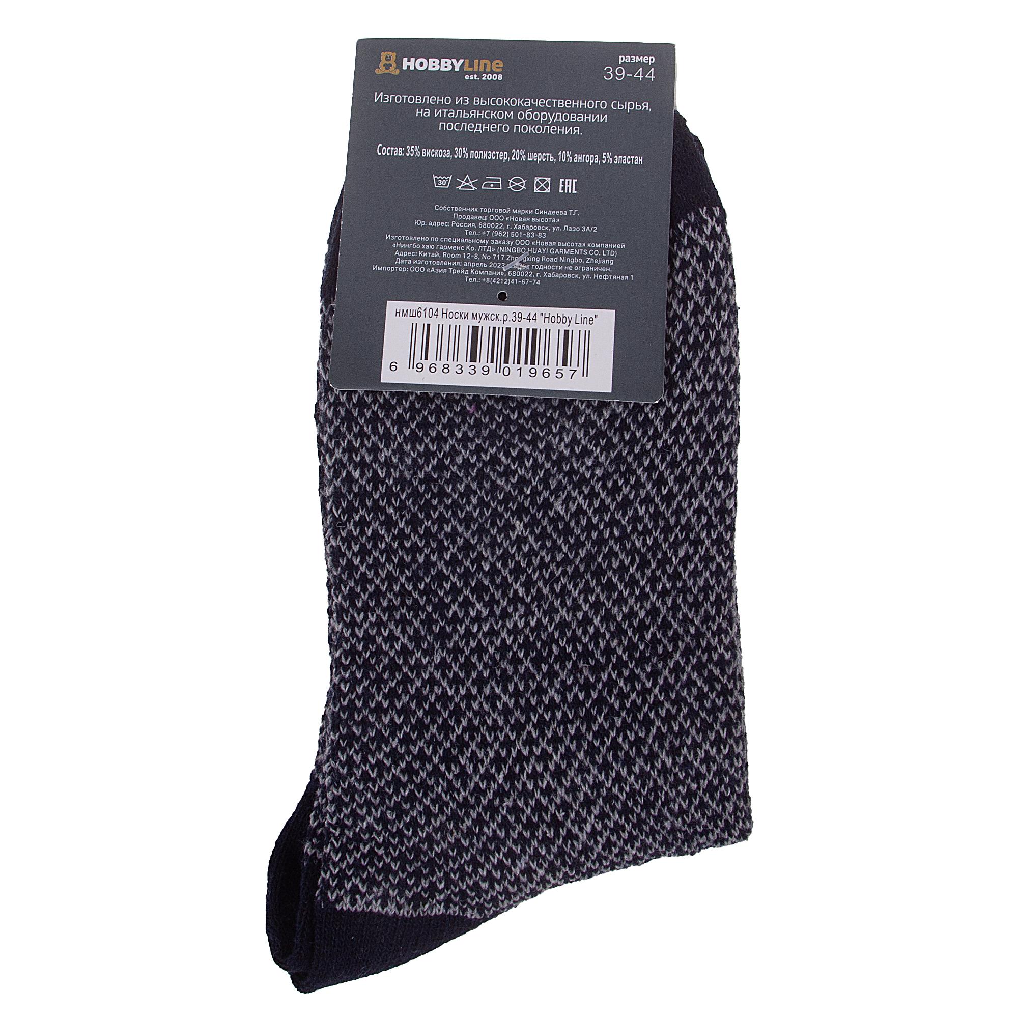 Зимние средней длины мужские носки, цвет темно-синий, теплые, с принтом, состав: 35% вискоза, 20% шерсть, 10% ангора, 30% полиэстер, 5% эластан, арт. Нмш6104. Производитель «Китай, страна бренда - Россия» под брендом «Hobby line».