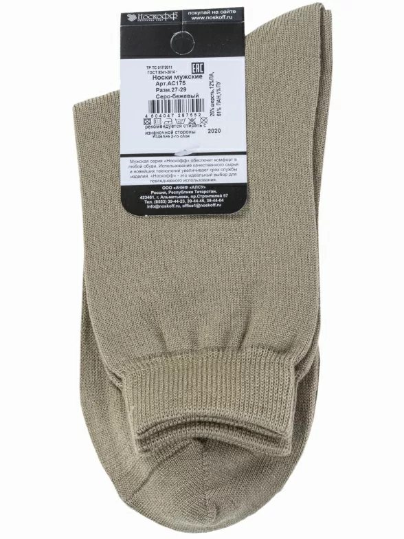 Мужские теплые носки "Носкофф" (АЛСУ), АС175, СЕРО-БЕЖЕВЫЕ