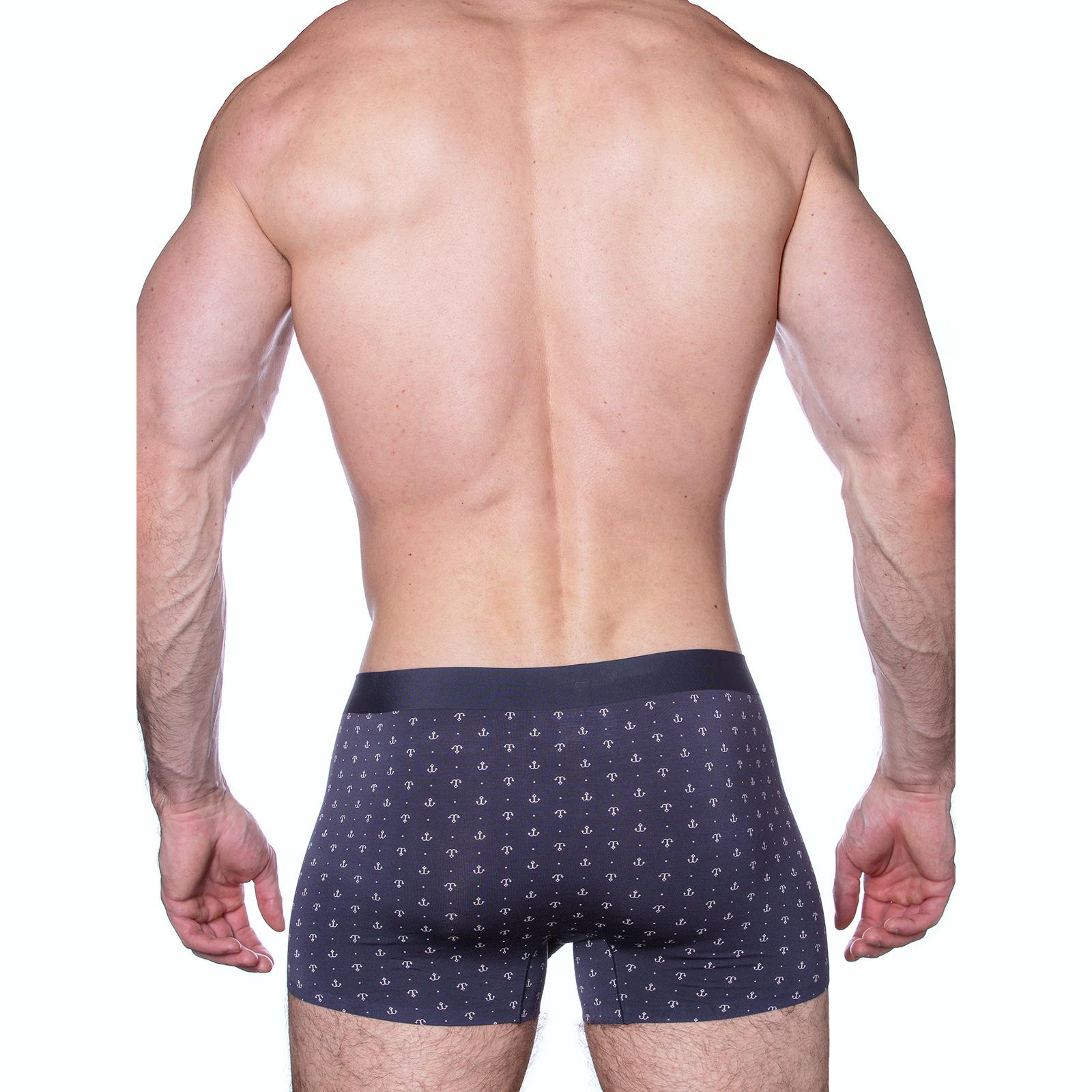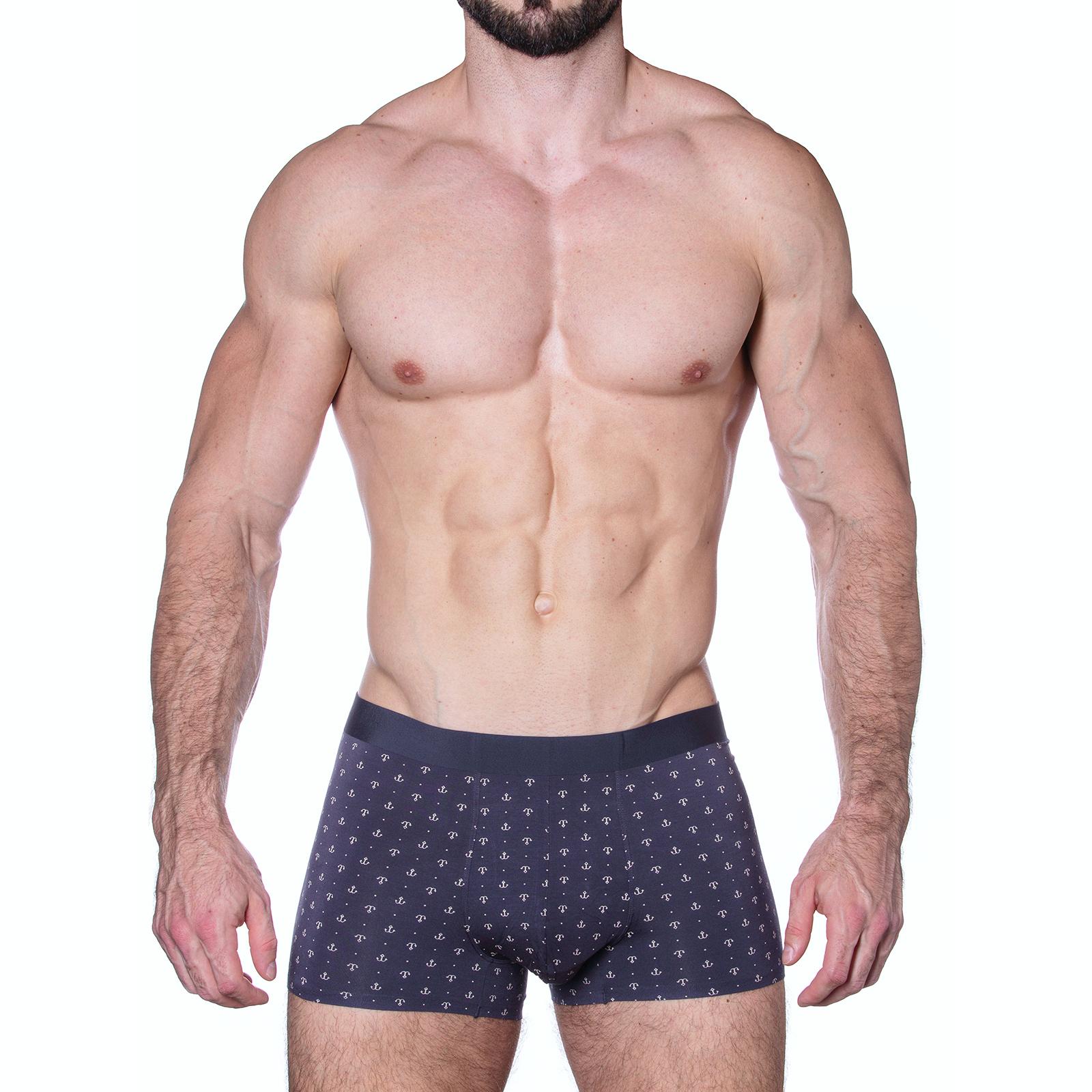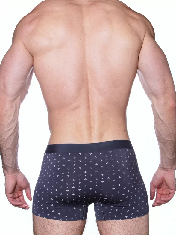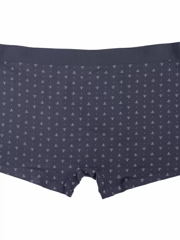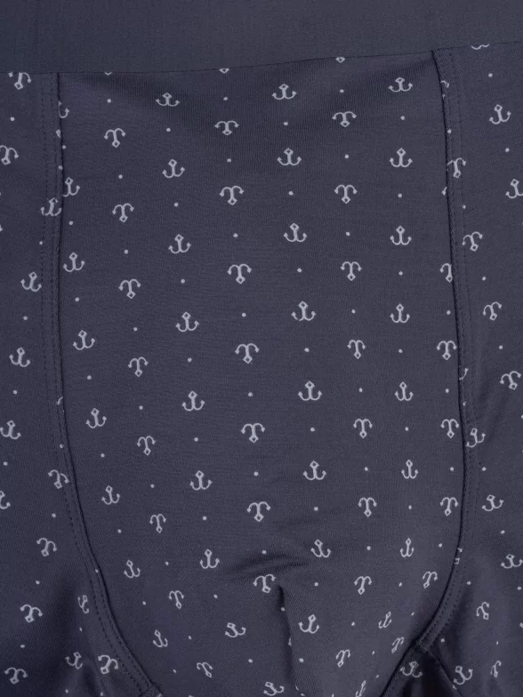 Обтягивающая модель стандартной посадки оформлена принтом в виде якорей, имеет эластичную резинку, надежно стыкованную с основной частью. Лазерная обработка швов обеспечивает больший комфорт и лучшее прилегание к телу.