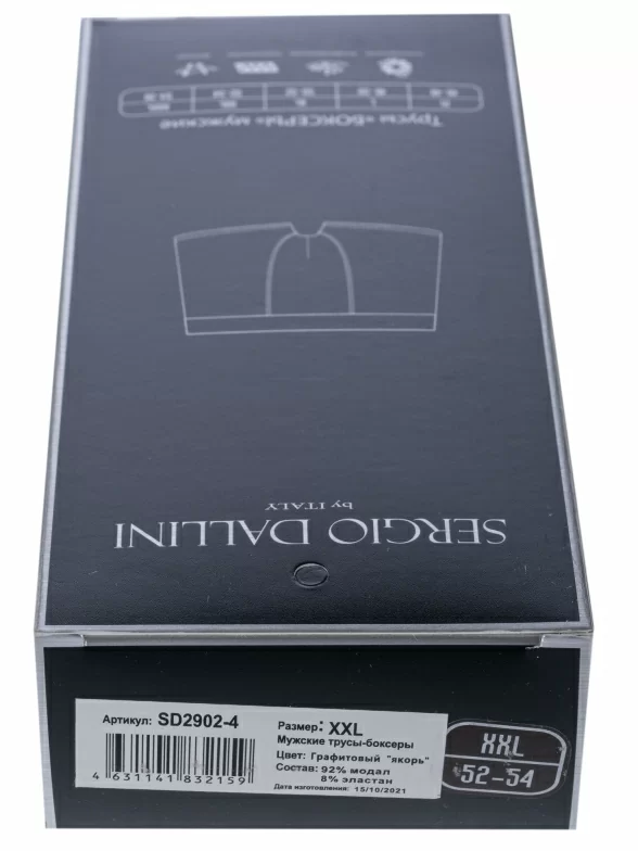 Трусы графитового цвета арт. SD2902-4 поставляются в фирменной коробке с дополнительной защитой плотного транспортного картона. В зависимости от партии также возможна упаковка в фирменный пакет с зиплоком, либо в пакет с фирменной этикеткой.
