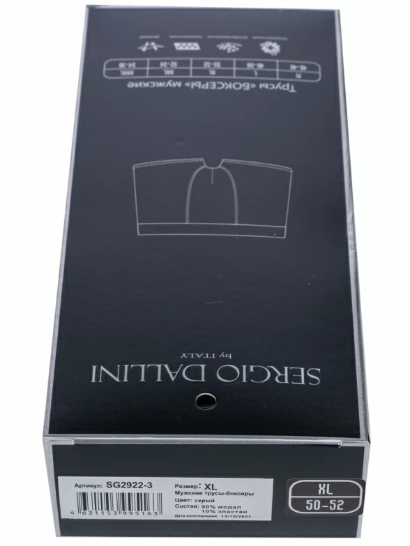 Трусы серого цвета арт. SG2922-3 поставляются в фирменной коробке с дополнительной защитой плотного транспортного картона. В зависимости от партии также возможна упаковка в фирменный пакет с зиплоком, либо в пакет с фирменной этикеткой.