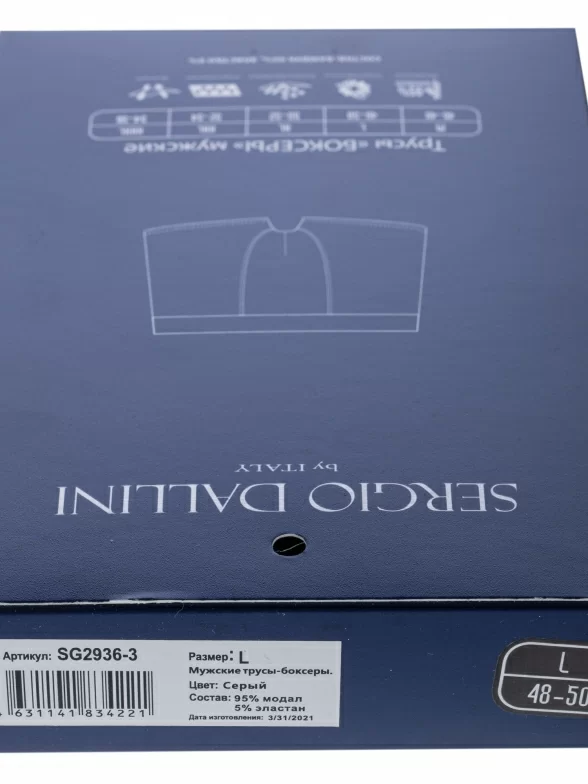 Трусы серого цвета арт. SG2936-3 поставляются в фирменной коробке с дополнительной защитой плотного транспортного картона. В зависимости от партии также возможна упаковка в фирменный пакет с зиплоком, либо в пакет с фирменной этикеткой.