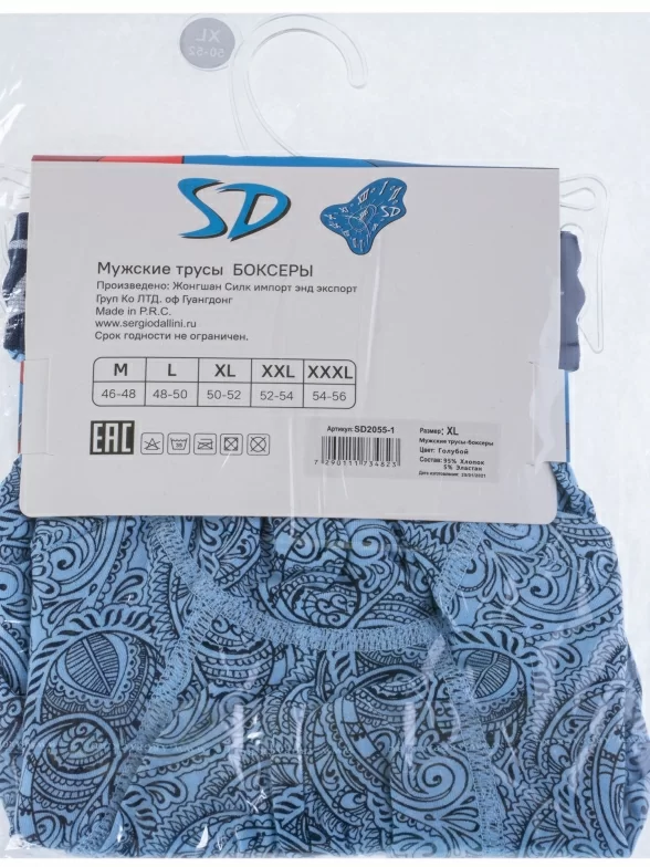 Трусы голубого цвета артикула SD2055-1 поставляются в фирменной коробке или в прозрачном пакете с этикеткой.