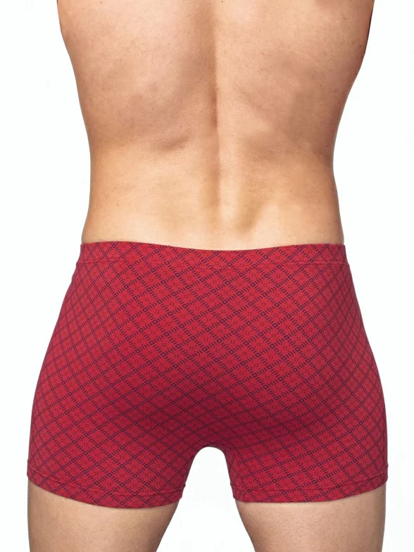 Модель стандартной посадки оформлена геометрическим похожим на клетку узором, имеет гладкие внутренние швы и вшитую эластичную резинку с логотипом бренда. Такие трусы полностью облегают тело и отлично подойдут для носки с узкими видами джинсов и штанов.