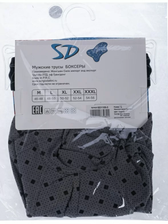 Трусы-боксеры серого цвета артикула SD1105-3 поставляются в фирменной коробке или в прозрачном пакете с этикеткой.