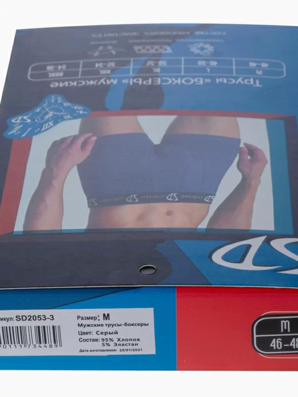 Трусы серого цвета артикула SD2053-3 поставляются в фирменной коробке или в прозрачном пакете с этикеткой.