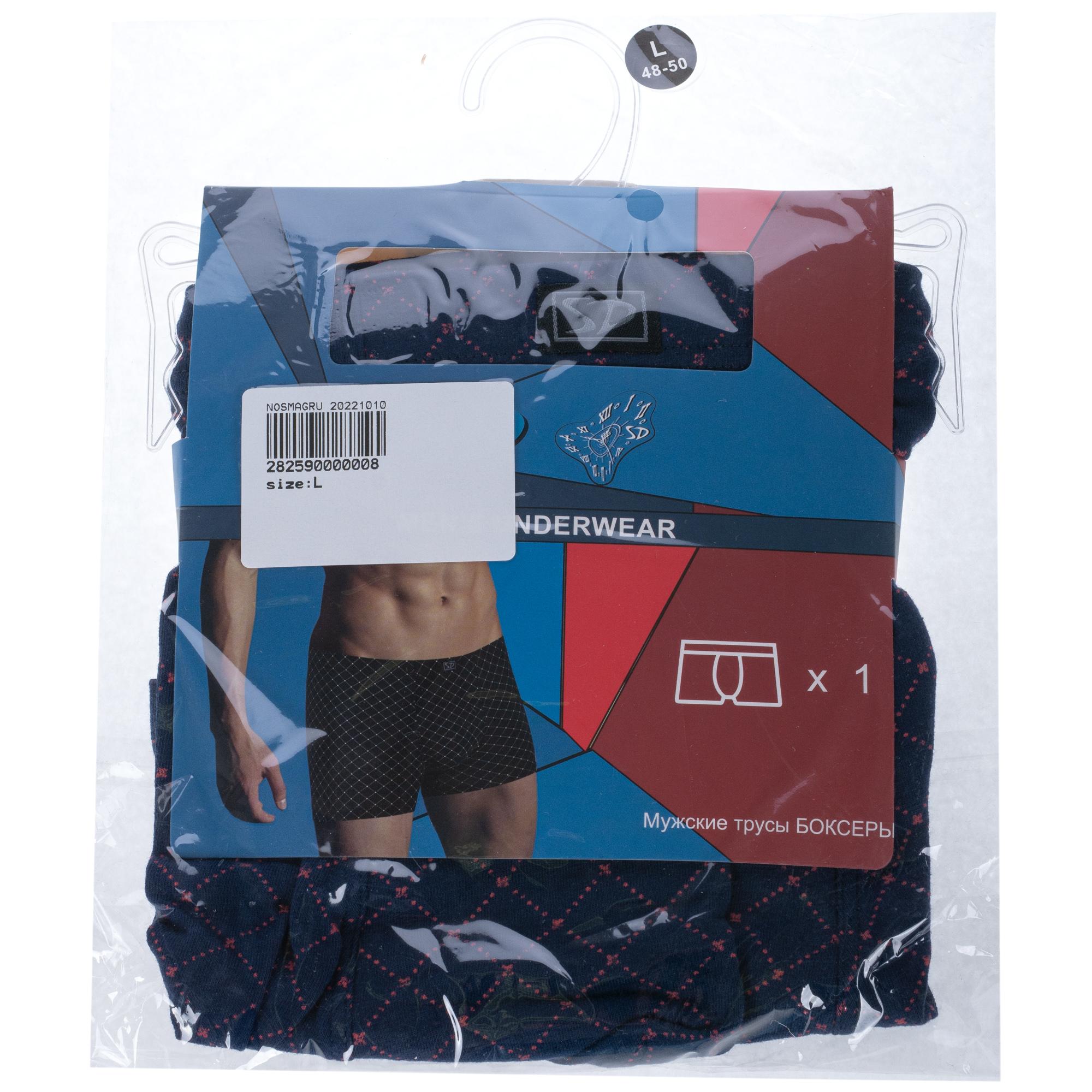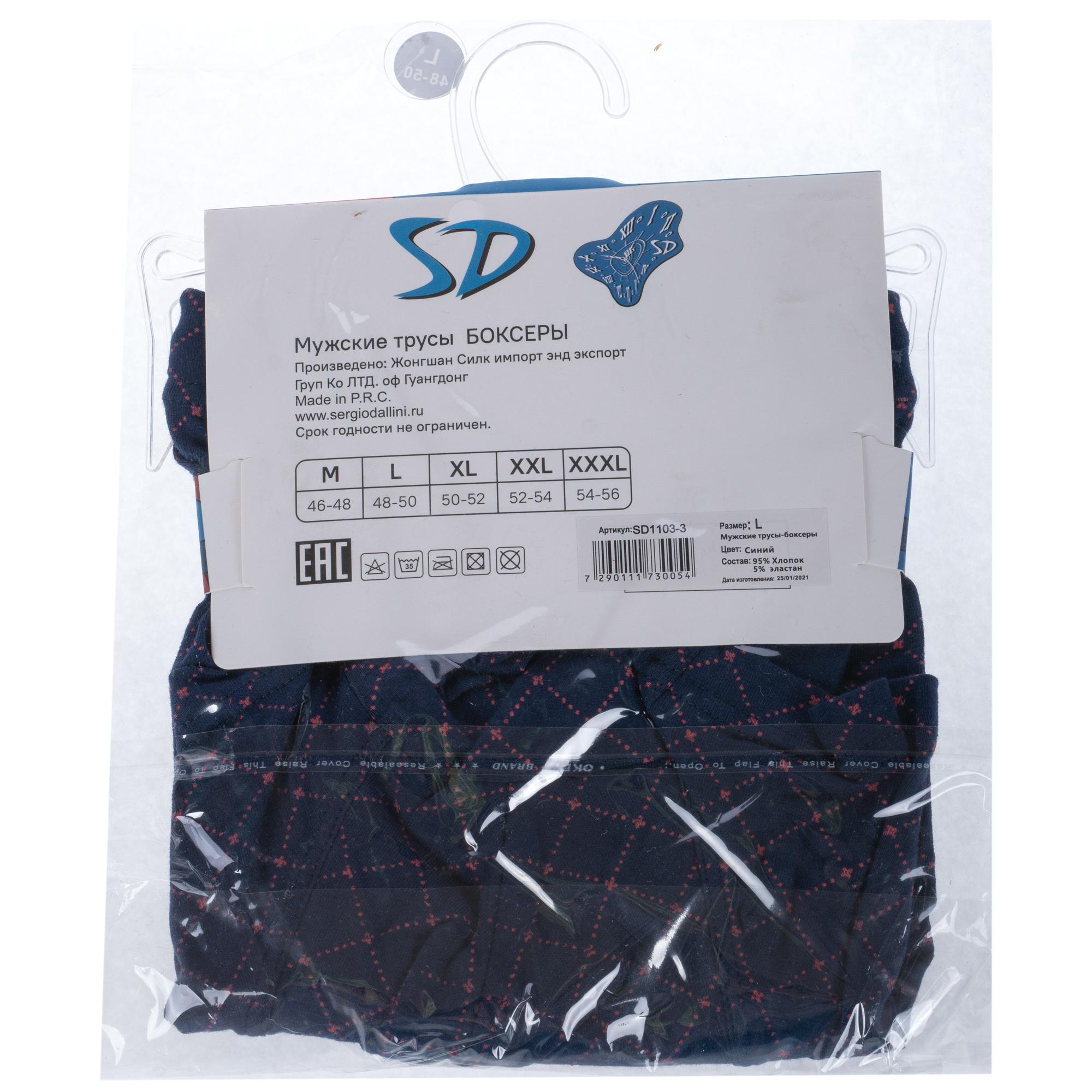 Трусы-боксеры синего цвета артикула SD1103-3 в прозрачном пакете с фирменной этикеткой.