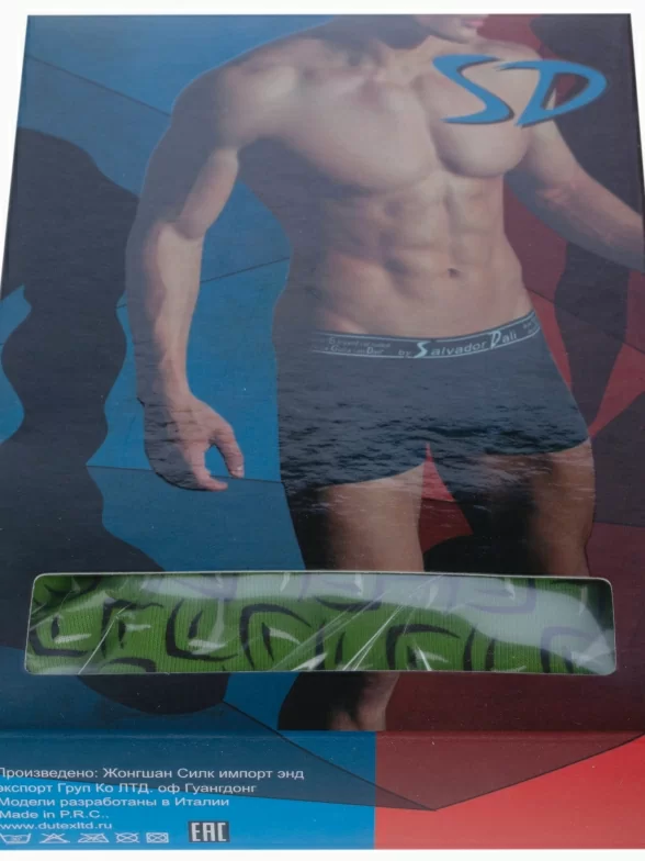 Трусы-боксеры зеленого цвета артикула SD2023-4 поставляются в фирменной коробке или в прозрачном пакете с этикеткой.