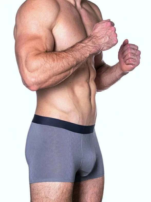 Мужские однотонные трусы-боксеры с малозаметным геометрическим узором от бренда Sergio Dallini.