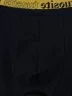 Однотонная обтягивающая модель стандартной посадки имеет ластовицу и эластичную резинку (3 см), пришитую накладным тройным швом, с внутренней стороны место крепления к основной части закрыто атласной лентой; с обеих сторон пояс оформлен логотипом бренда. Швы на гульфике спрятаны в двойную подкладку, а боковые швы отсутствуют.