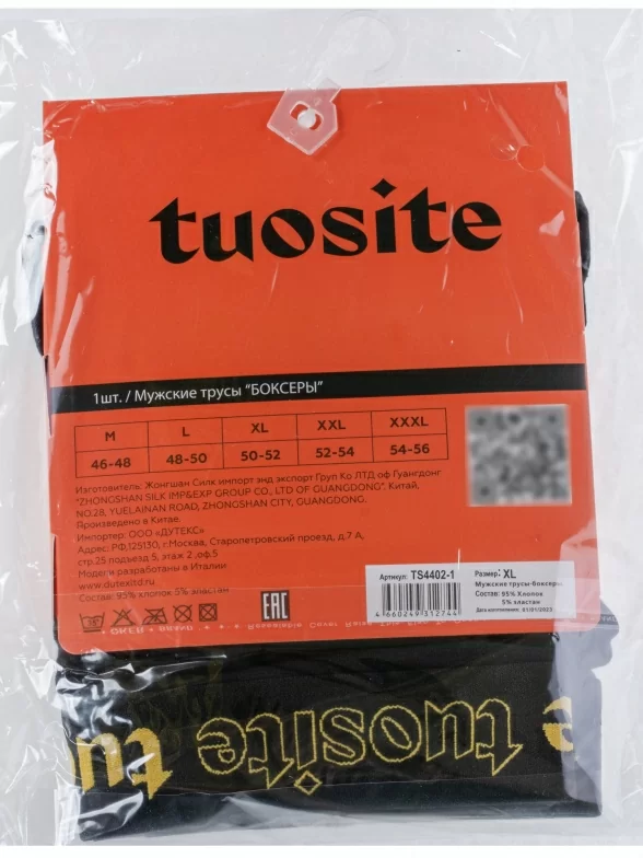 Мужские трусы-боксеры Tuosite, TS4402-1, ЧЕРНЫЕ